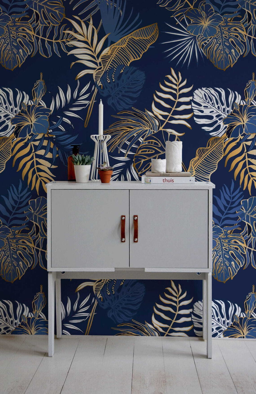 Tover elke ruimte om in een tropisch paradijs met deze prachtige muurschildering met een patroon van bladeren tegen een rijke blauwe achtergrond. Het is alsof je een stukje natuur in huis haalt. Stel je voor dat je koffie drinkt omringd door weelderig groen en levendige ontwerpen – over een instant sfeerbooster gesproken! Met het speelse groen nodigt de muurschildering uit tot warmte en een gevoel van rust, perfect voor een ontspannen sfeer. Stel je voor dat je vrienden ontvangt; ze zullen oooh-ing en aaah-ing zijn bij dit unieke decor. Een attent tintje voor slaapkamers, woonkamers of zelfs een gezellige leeshoek – deze muurschildering is klaar om je innerlijke natuurliefhebber te wekken. Ga je gang, laat die muren een beetje frisse lucht ademen!
