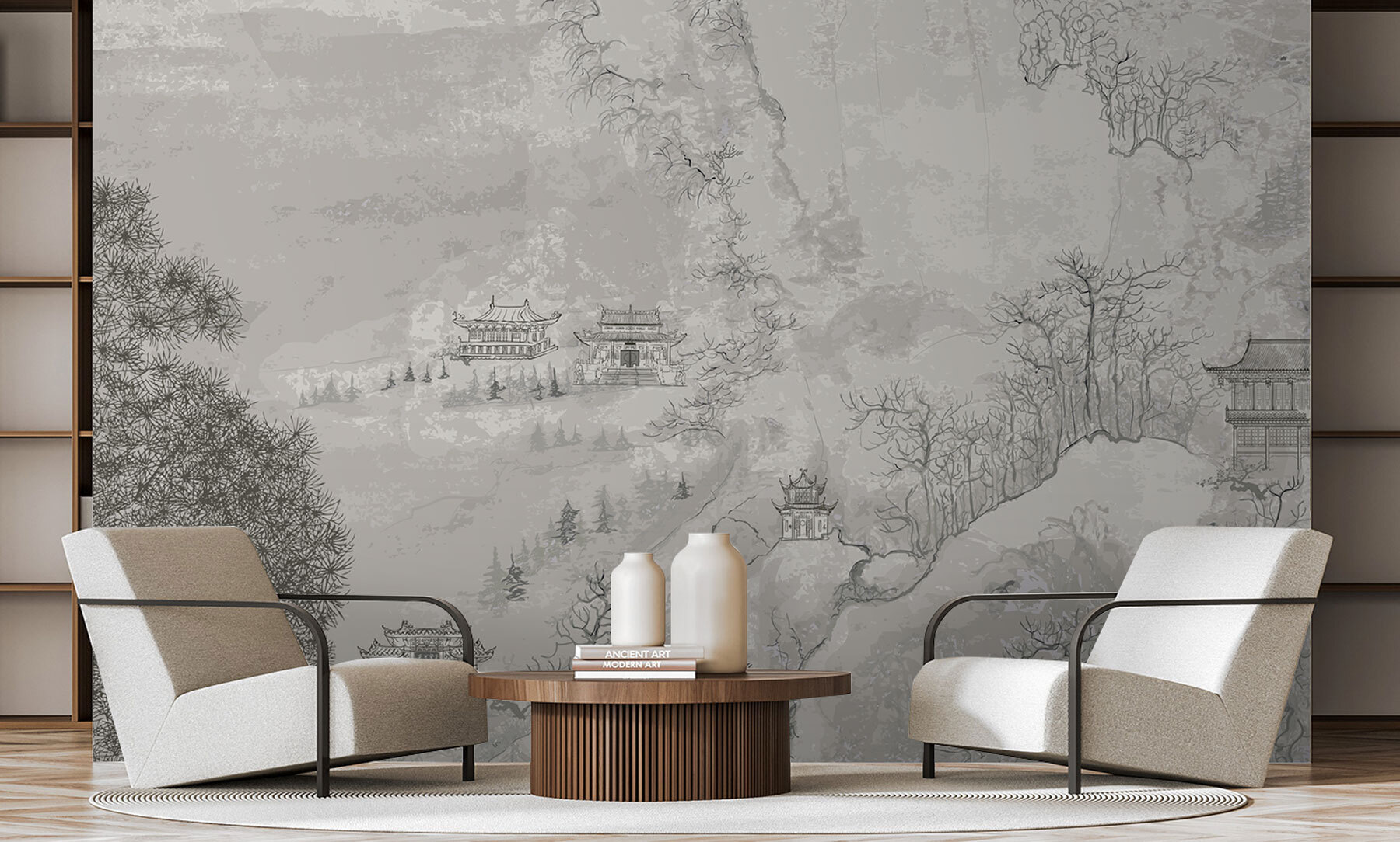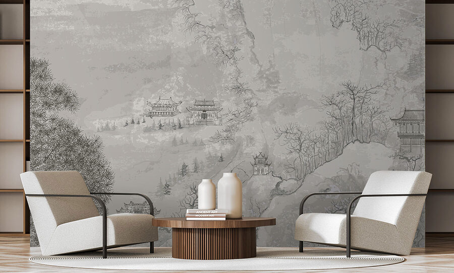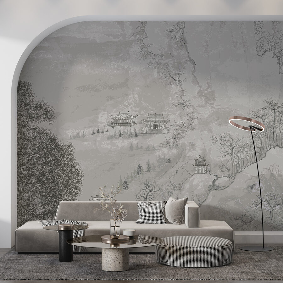 Transformeer je ruimte met deze fascinerende muurschildering die een serene, architecturale charme naar je muren brengt. Stel je dit eens voor: een ver landschap van elegante gebouwen genesteld tussen zacht wiegende bomen, die een oase van rust creëren. Het is alsof je een stukje natuur en kunst combineert en verhalen fluistert over verre landen. Stel je voor dat je ‘s ochtends aan je koffie nipt terwijl je naar dit tafereel staart. Kalm, vredig en een beetje inspirerend. Perfect voor die knusse hoekjes of een opvallende muur die wel wat liefde kan gebruiken. Laat je innerlijke decorateur de vrije loop en laat deze muurschildering je huis opvrolijken!