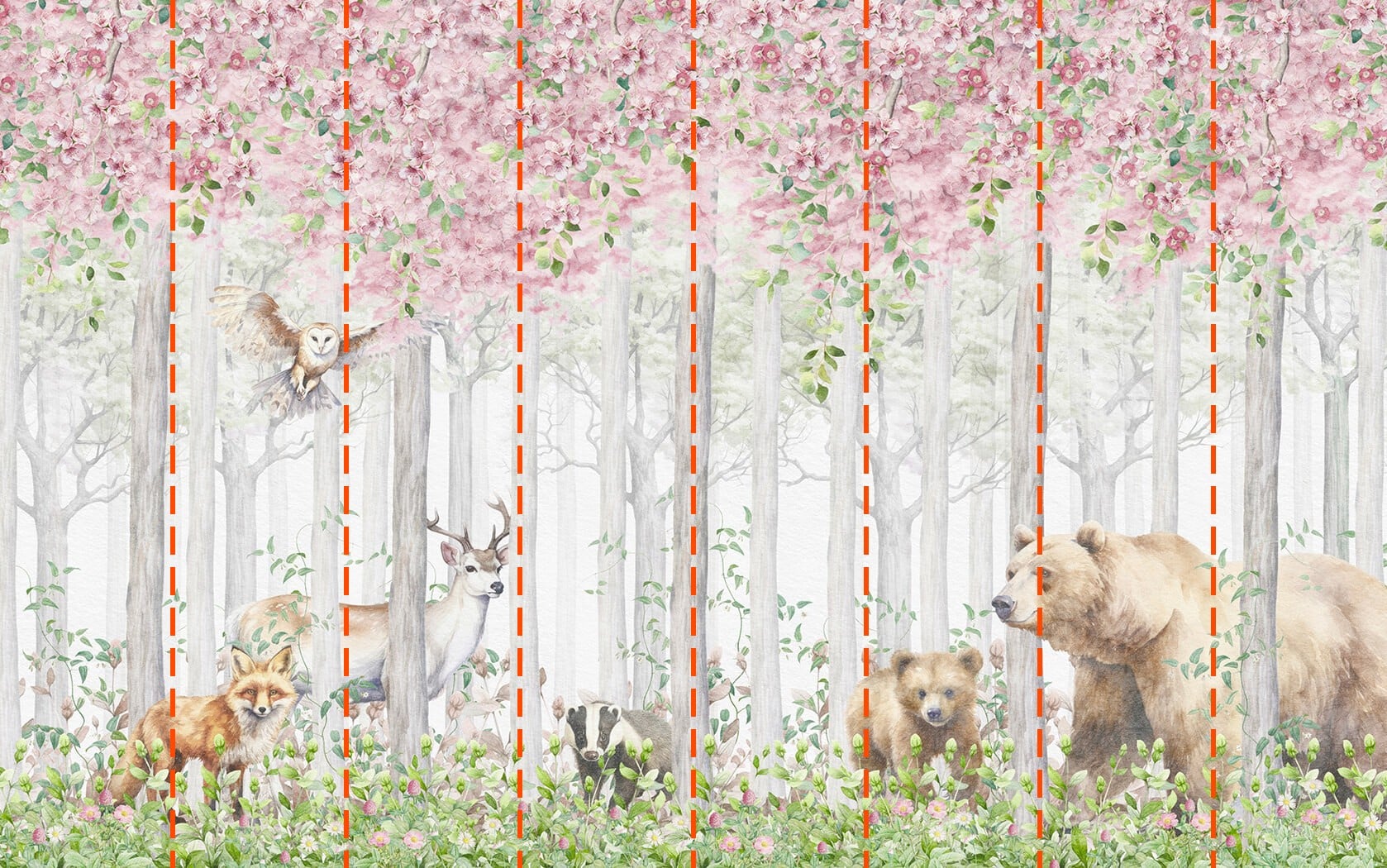 Je behang wordt klaargemaakt volgens de afmetingen die je hebt opgegeven tijdens het bestelproces. Het doek wordt opgedeeld in handige secties van maximaal 50 cm breed.