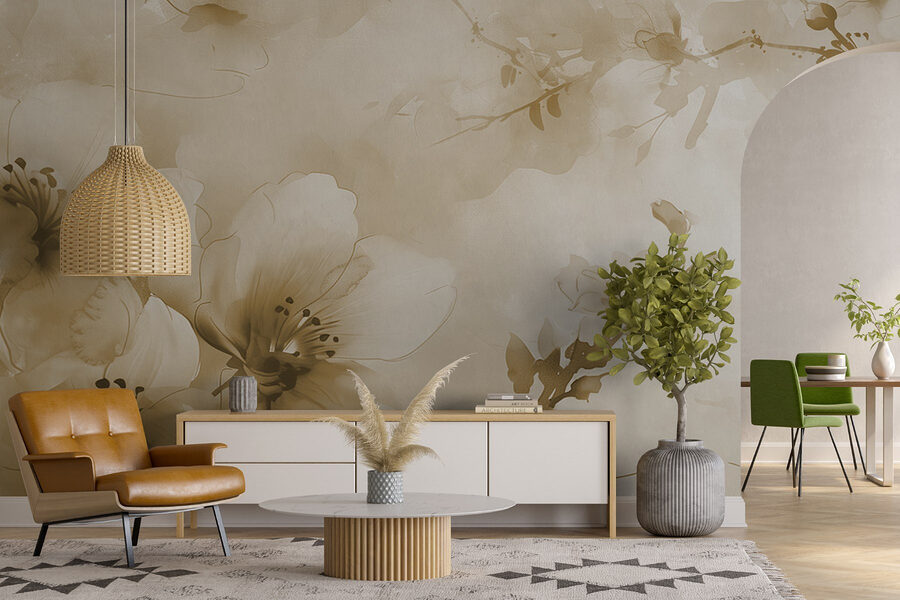 Tover je ruimte om in een dromerige ontsnapping met deze prachtige muurschildering, “Delicate Blooms in Soft Hues”. Stel je voor dat je een serene Japanse tuin binnenstapt telkens als je de kamer binnenloopt. De zachte bloemen wikkelen je in een zachte omhelzing en creëren een rustgevende sfeer die perfect is voor een rustige middag of een gezellige avond.