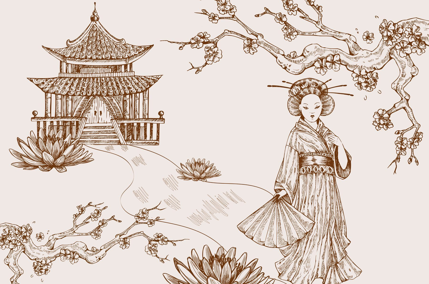 Verander elke ruimte in een sereen toevluchtsoord met deze prachtige muurschildering met een gracieuze vrouw in een kimono. Omringd door bloeiende kersenbomen en een rustige pagode is het alsof je in een droom van een Japanse tuin stapt. Stel je voor: thee drinken terwijl je staart naar de zachte tinten en delicate lijnen van dit kunstwerk – het is een mini-retraite bij jou thuis. Ideaal voor een gezellige leeshoek of een elegante eetkamer, het voegt een heerlijk vleugje natuur en cultuur toe. Directe sfeerbooster? Absoluut. Deze muurschildering decoreert niet alleen, hij neemt je mee!