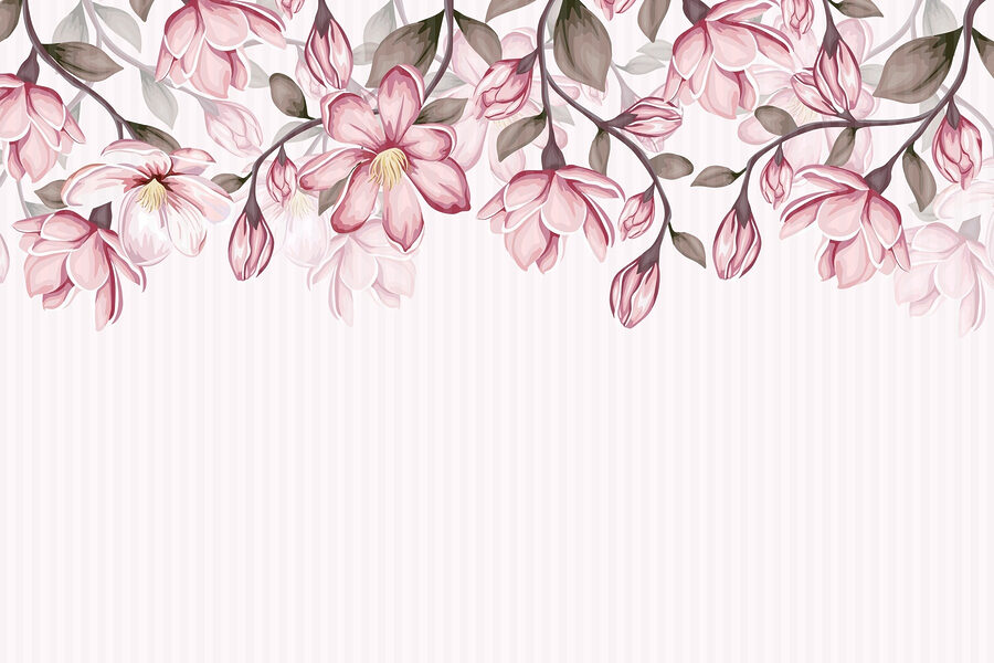 Fotobehang Roze bloemen op een witte achtergrond (SKU: w02664)