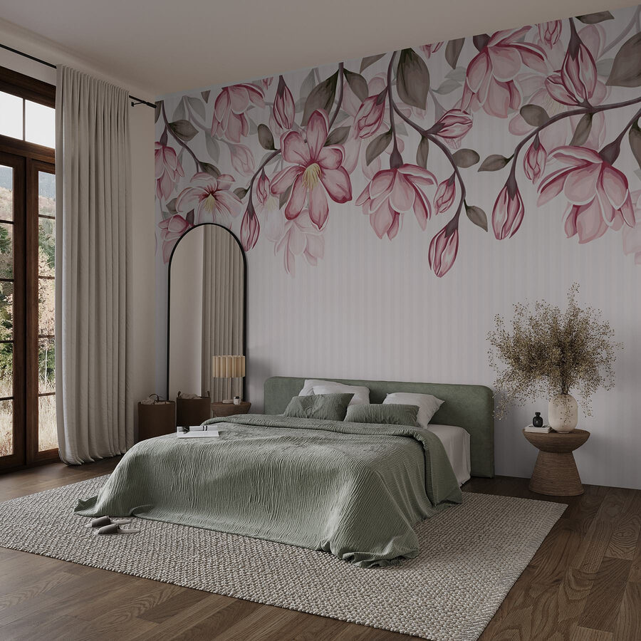 Verander elke kamer in een sereen toevluchtsoord met deze prachtige muurschildering van roze bloemen op een zacht witte achtergrond. Stel je voor dat je een ruimte binnenloopt en je meteen het gevoel hebt dat je in een vredige Japanse tuin bent – zonder dat je je koffers hoeft te pakken. De delicate bloemen dansen bijna over de muur en nodigen uit tot warmte en vrolijkheid. Perfect voor een gezellig leeshoekje of ergens anders waar je wel een vleugje natuurlijke schoonheid kunt gebruiken. En kijk eens naar die subtiele tinten! Misschien inspireren ze wel tot een spontaan kopje thee of een moment van stille reflectie. Wie wist dat wanddecoratie zo verfrissend kon zijn?