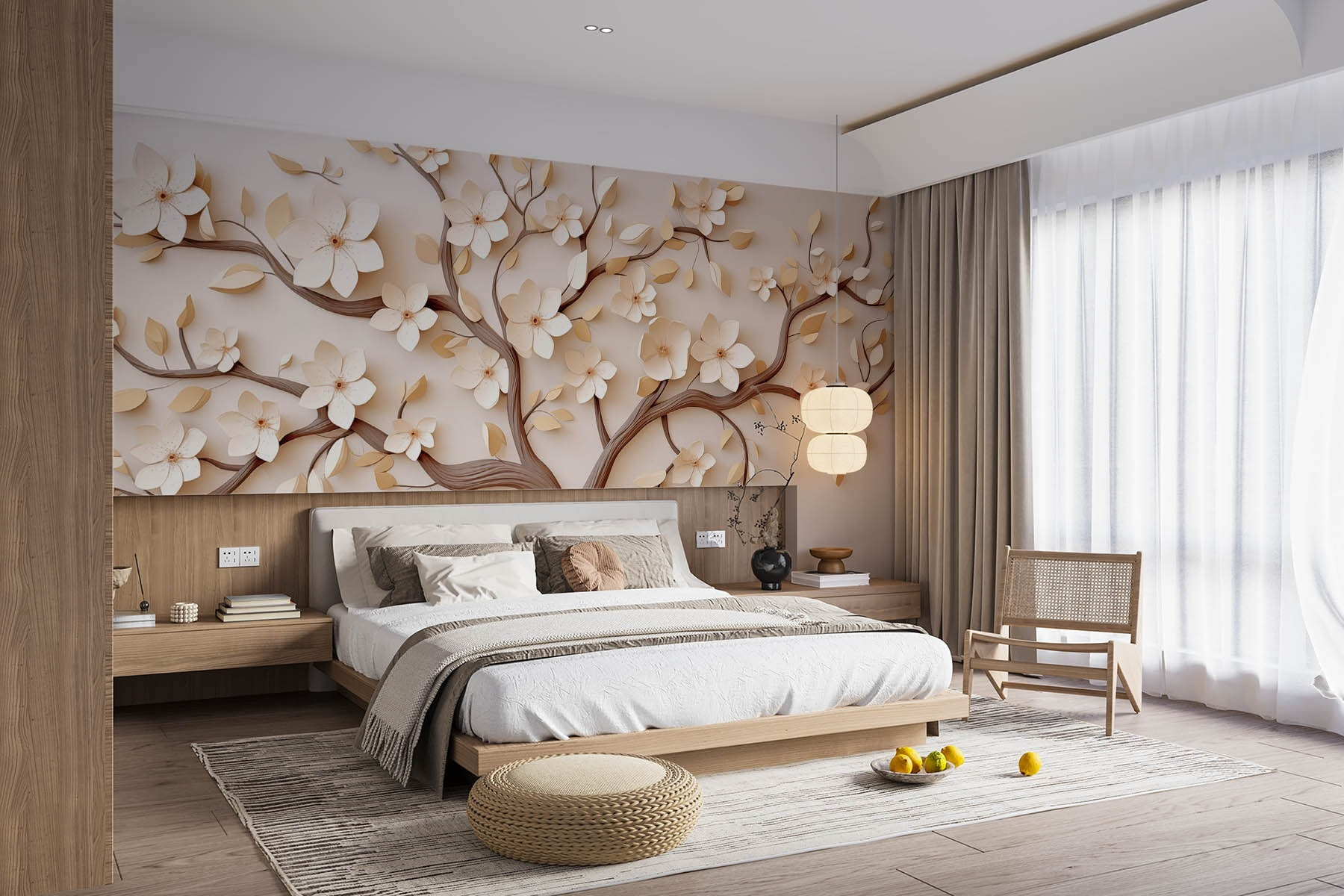Transformeer elke ruimte met deze prachtige muurschildering met een mooie boom versierd met bloemen. Stel je voor dat je vanuit je woonkamer een serene Japanse tuin binnenstapt. De zachte kleuren en sierlijke lijnen nodigen uit tot een rustgevende sfeer waardoor je zin krijgt om thee te drinken en urenlang te dagdromen. Perfect voor een gezellig hoekje of een eethoek, het voegt een vleugje natuur toe zonder al die vervelende pollen. Of je nu vrienden ontvangt of geniet van een rustige avond alleen, deze muurschildering zorgt voor vreugde en gespreksstof. Het is alsof je een zacht briesje in huis haalt – wie zou dat niet willen?