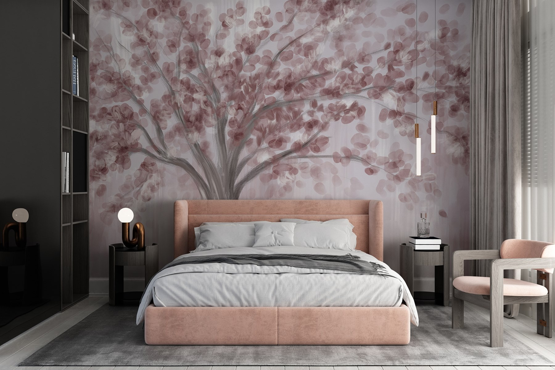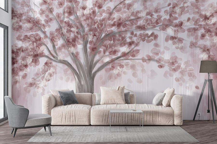 Transformeer elke ruimte met deze betoverende muurschildering met een prachtige boom versierd met delicate roze bladeren. Het brengt een vleugje natuur naar binnen – perfect voor die momenten waarop naar buiten gaan gewoon te veel moeite is. Stel je voor dat je thee drinkt terwijl je naar dit serene tafereel staart; het is alsof je een stukje Japanse tuin aan je muur hebt hangen. De zachte tinten nodigen uit tot kalmte en creativiteit, waardoor het een ideale achtergrond is voor een gezellige leeshoek of een inspirerende werkplek. Het is niet alleen decor; het is een gevoel. Een beetje kunst, een vleugje eigenzinnigheid en een heleboel charme – wat wil je nog meer?