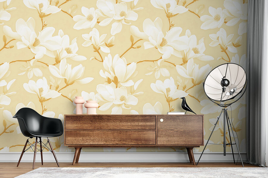 Transformeer elke kamer met deze ‘Wall Murals Pattern of White Flowers’. Het is alsof u een Japanse tuin in huis haalt, maar dan zonder het onderhoud (hallo, groene vingers!). Deze elegante bloemen dansen over een warme, zachte achtergrond en maken uw ruimte direct lichter en uitnodigender. Stel je voor dat je ‘s ochtends van je koffie nipt terwijl je omringd bent door deze dromerige bloemenesthetiek – wat een sfeer! Perfect voor elke ruimte die een vleugje sereniteit of een touch van de gratie van de natuur nodig heeft. Bovendien is het veelzijdig: of het nu in een gezellig hoekje is of op een opvallende muur, het zal zeker iedereen die langskomt bekoren. Stel je het eens voor: een bloemenomhelzing die nooit verwelkt!