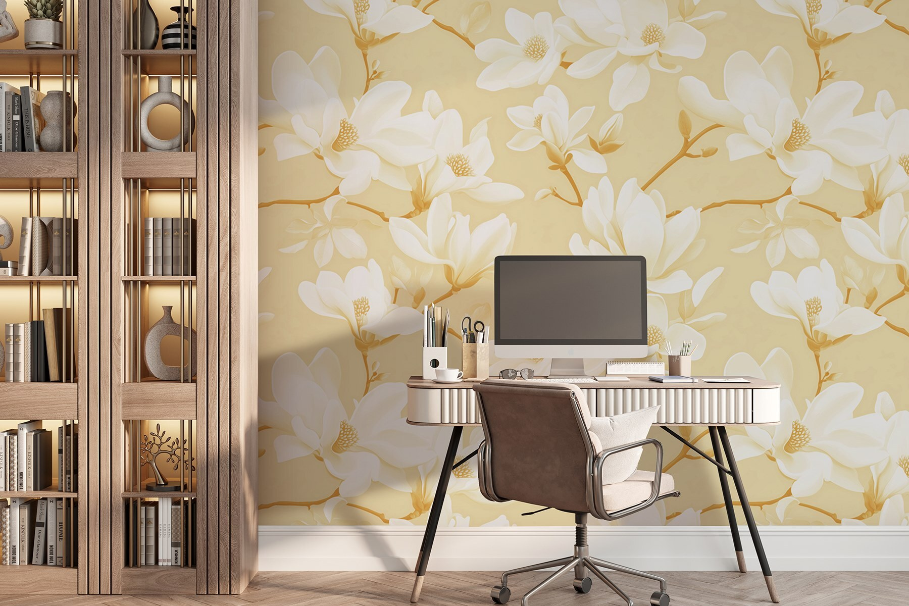 Transformeer elke kamer met deze ‘Wall Murals Pattern of White Flowers’. Het is alsof u een Japanse tuin in huis haalt, maar dan zonder het onderhoud (hallo, groene vingers!). Deze elegante bloemen dansen over een warme, zachte achtergrond en maken uw ruimte direct lichter en uitnodigender. Stel je voor dat je ‘s ochtends van je koffie nipt terwijl je omringd bent door deze dromerige bloemenesthetiek – wat een sfeer! Perfect voor elke ruimte die een vleugje sereniteit of een touch van de gratie van de natuur nodig heeft. Bovendien is het veelzijdig: of het nu in een gezellig hoekje is of op een opvallende muur, het zal zeker iedereen die langskomt bekoren. Stel je het eens voor: een bloemenomhelzing die nooit verwelkt!