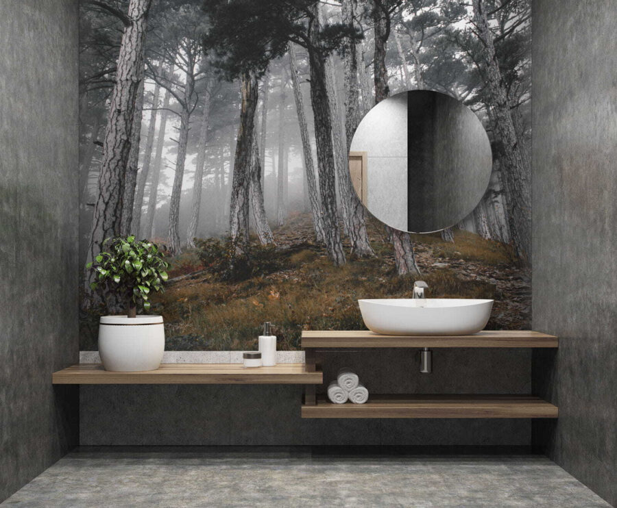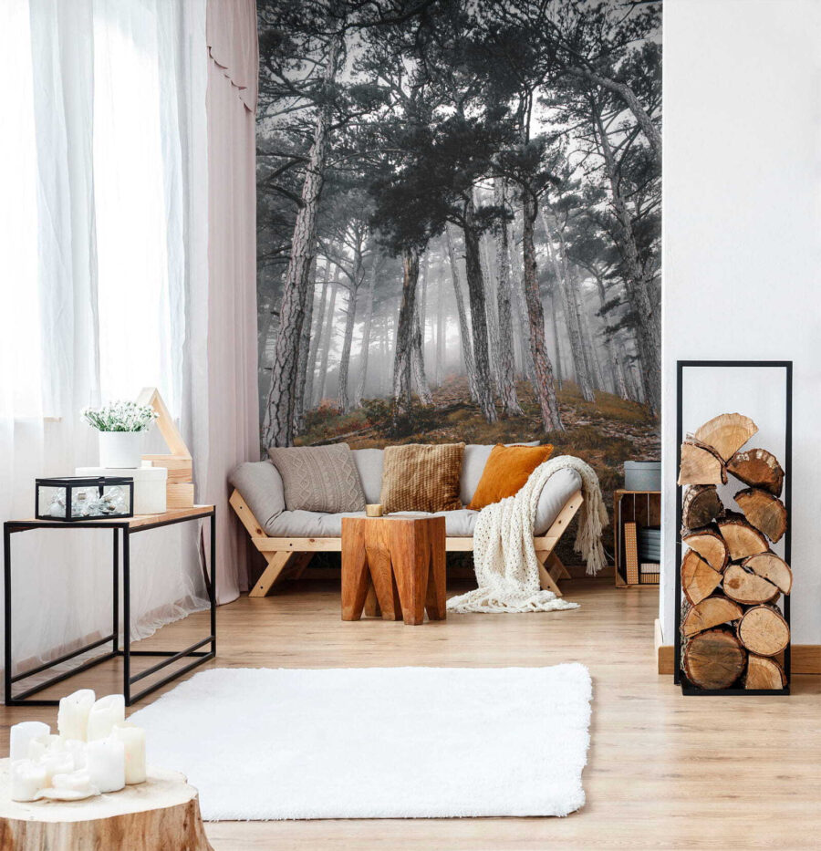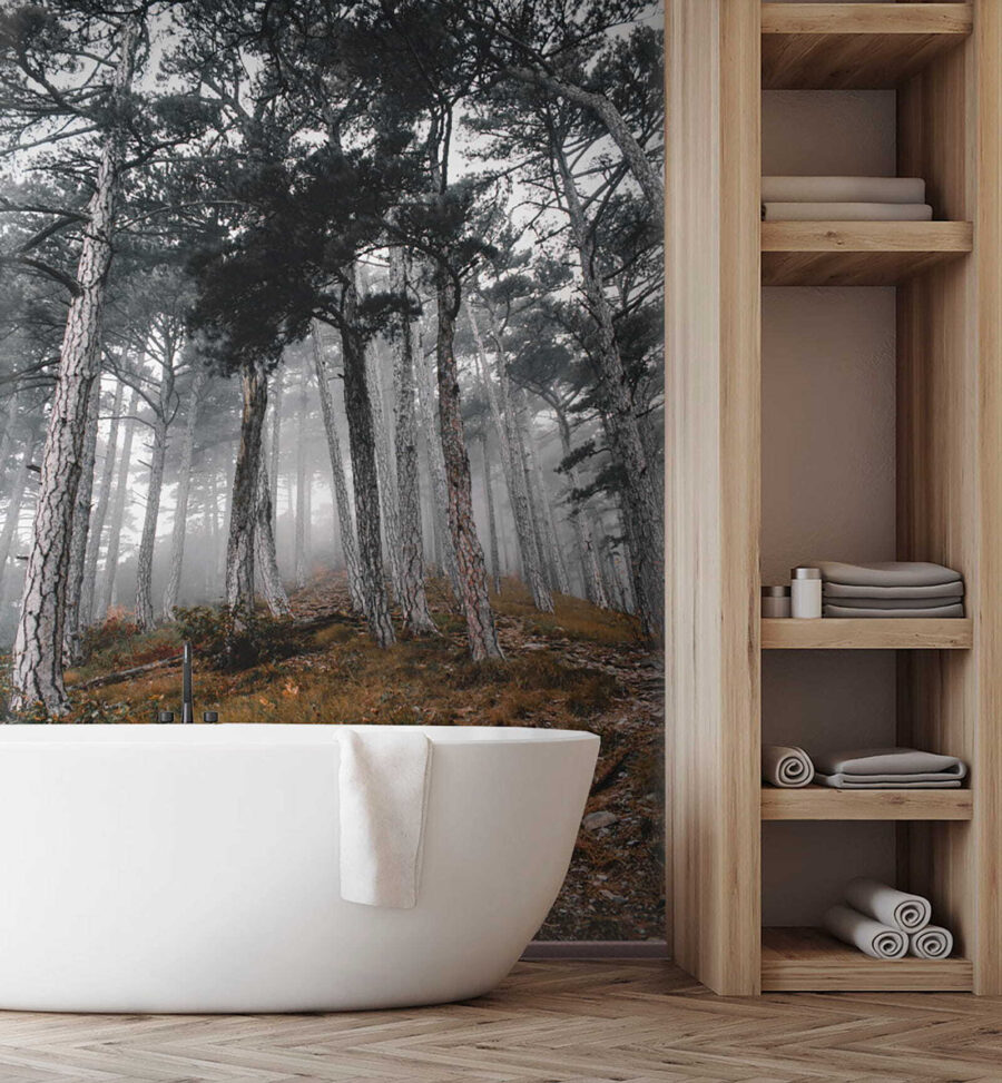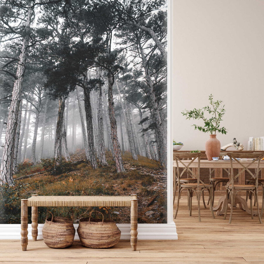 Stel je voor dat je een rustig bos binnenstapt, waar bomen hoog reiken en de mist geheimen van de natuur fluistert. Deze muurschildering ‘Bos met bomen in de mist’ verandert je ruimte in een serene toevluchtsoord. Het legt dat dromerige moment vast waarop zonlicht door de mist danst en zachte schaduwen en een gevoel van verwondering creëert. Stel je voor dat je lekker met een boek gaat zitten of koffie drinkt terwijl deze vredige scène je omhult – het is alsof je de buitenlucht naar binnen haalt, maar dan zonder de insecten! Perfect voor iedereen die een vleugje rust en mysterie aan zijn muren wil toevoegen. Dus waarom laat je je fantasie niet de vrije loop tussen deze mistige bomen? Het is een gespreksstarter, een herinnering om te ademen en een stukje bosmagie, alles in één!