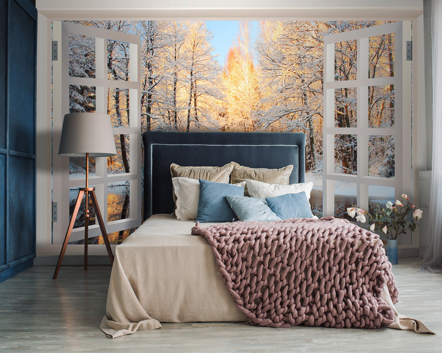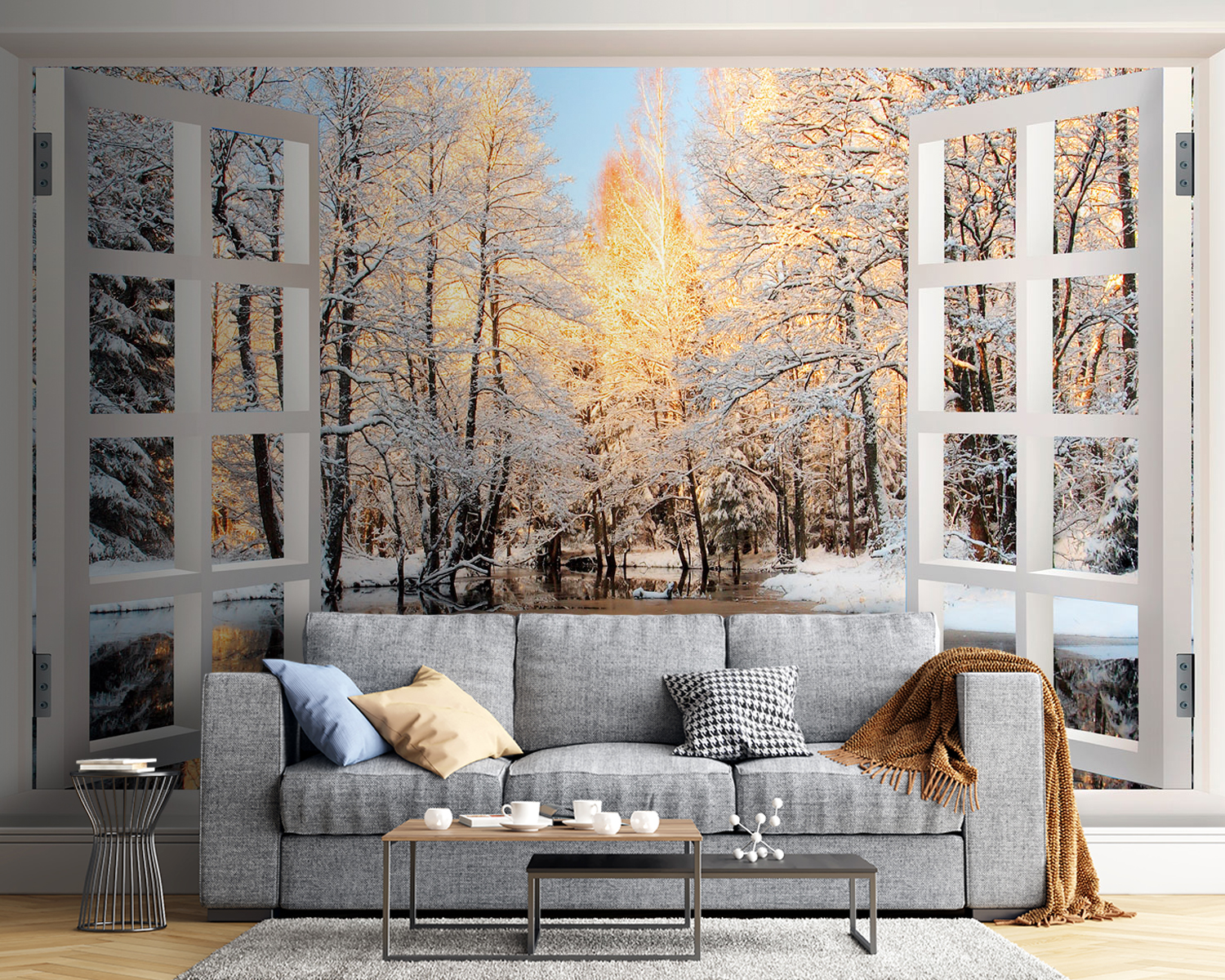 Verander elke kamer in een frisse wind met deze prachtige muurschildering met een speelse scène van vogels die naar een rustig meer turen, omlijst door een gezellig raam. Stel je voor dat je elke dag wakker wordt met dit uitzicht – de zachte glinstering van het water, de besneeuwde bomen die zachtjes glinsteren in het licht en de nieuwsgierige vogels die je aanstaren. Het is alsof je de natuur binnen handbereik hebt. Perfect voor elke sfeer, of het nu een chille woonkamer of een rustige slaapkamer is. Zeg vaarwel tegen saaie muren en laat je ruimte een verhaal vertellen dat elke gast doet opkijken. Een zachte herinnering aan de schoonheid buiten, wachtend om gekoesterd te worden.