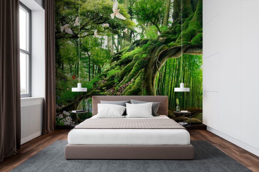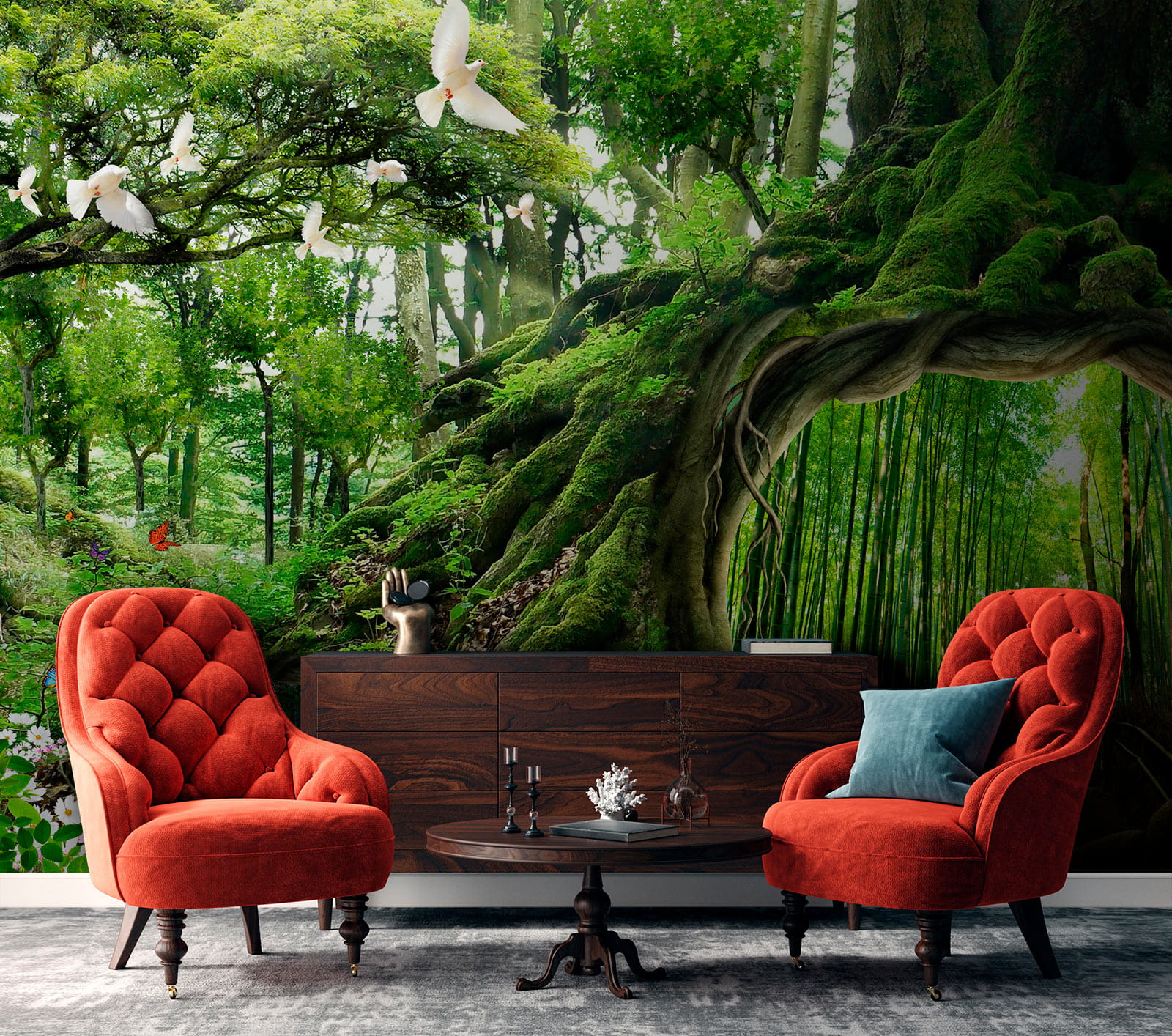 Verander uw ruimte in een gezellig bos met de “Wall Murals Tree with a Hole in the Middle of It”. Stel u voor dat u uw kamer binnenstapt en het gevoel hebt dat u net een magisch bos bent binnengegaan. Deze muurschildering legt de essentie van de natuur vast, met levendige groentinten en speelse kleine details, zoals vlinders en zachtaardige duiven. De boom, met zijn uitnodigende holte, speelt een spelletje met uw geest – het is als een poort naar een andere betoverende wereld! Perfect voor dagdromers of iedereen die behoefte heeft aan een beetje natuurtherapie. Zie het als een dagelijkse herinnering om te ademen en te ontspannen, waarbij je de buitenwereld naar binnen haalt terwijl je nog steeds geniet van het comfort van thuis. Het is behang dat verhalen fluistert over avontuur en rust, waardoor elke blik een mini-uitje wordt. Hoe kan iemand dat weerstaan?