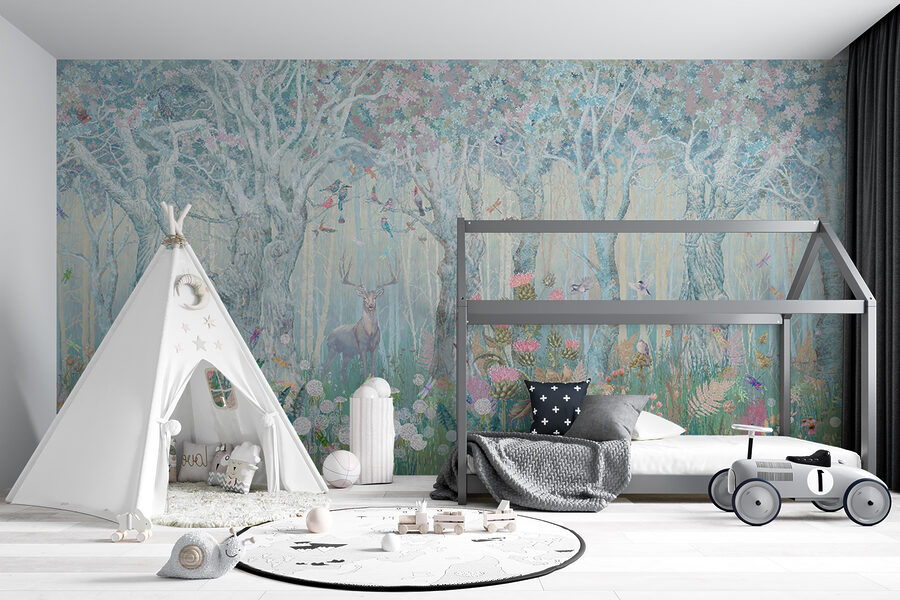 Duik in de muurschildering “Enchanted Forest”, waar zachte herten en grillige vogels een magisch bos naar je woonkamer brengen. Zie het voor je: een sereen tafereel dat zich over je muur uitstrekt en overloopt van zachte pasteltinten en gedetailleerde flora. Deze muurschildering is perfect voor natuurliefhebbers en verandert elke ruimte in een rustig toevluchtsoord. Stel je voor dat je gasten verwelkomt met zo’n rustgevende, prachtige achtergrond – het is alsof je een sprookje binnenloopt! Of het nu een woonkamer, slaapkamer of zelfs een gezellig leeshoekje is, deze muurschildering fluistert charme en rust in elke hoek. Het is niet zomaar decoratie; het is een directe ontsnapping naar een vredig bos.