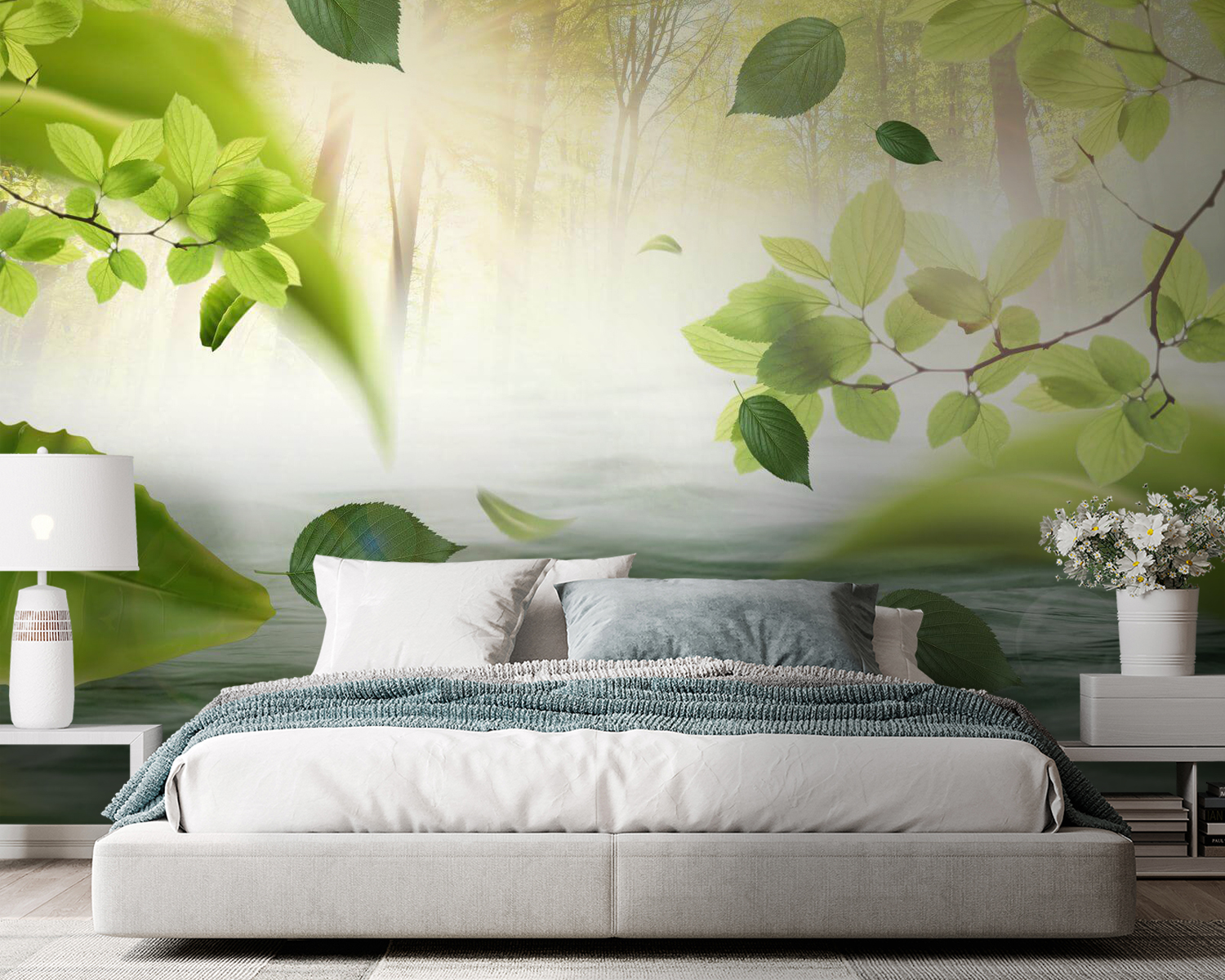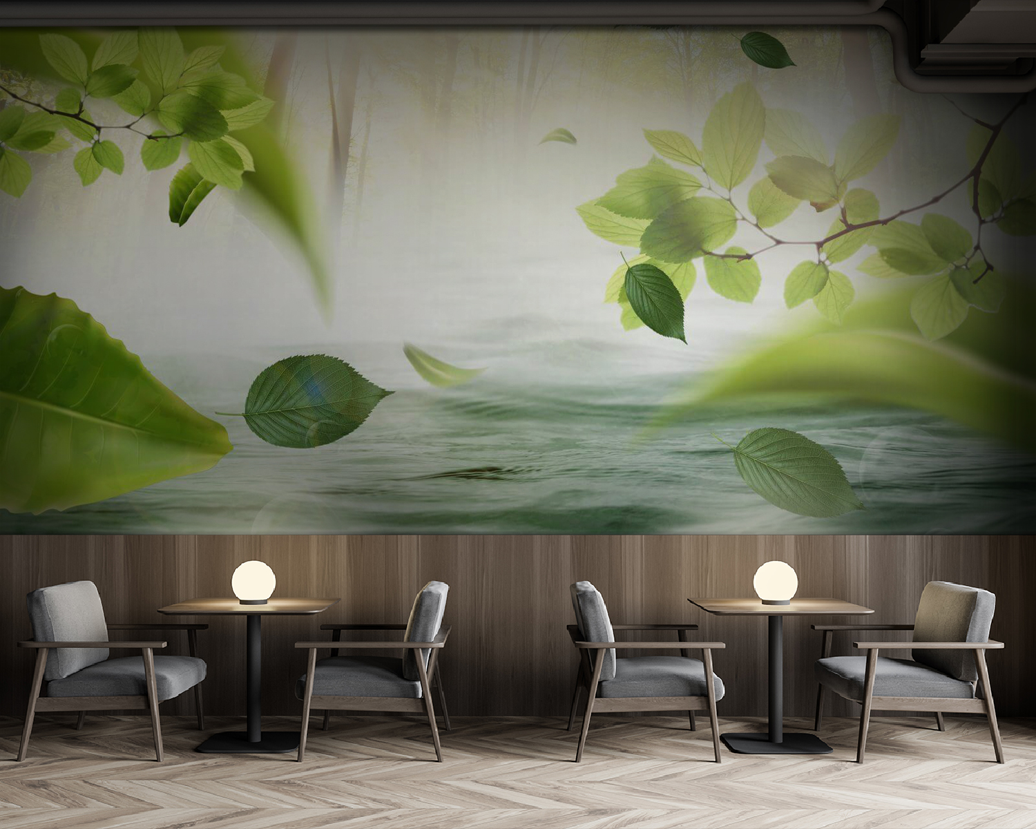 Verander elke ruimte in een verfrissende ontsnapping met deze muurschildering “Water with Leaves”. Stel je een sereen bos voor waar bladeren zachtjes dansen boven een glinsterend beekje. Het is alsof je een stukje natuur in huis haalt. Stel je gezellige ochtenden voor met binnenvallend zonlicht, of die perfecte avondstemming wanneer de buitenwereld tot rust komt. Het zachte groen en het rustgevende water creëren een vredige sfeer – ideaal om te ontspannen na een lange dag. Het is niet alleen decor; het voelt als een warme knuffel van de natuur. Perfect voor een woonkamer, slaapkamer of zelfs een gezellig leeshoekje. Wie wil dat nou niet?