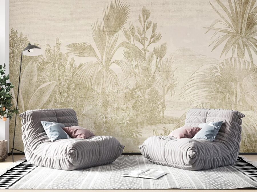 Verander elke kamer in een serene toevluchtsoord met deze prachtige muurschildering met elegante plantmotieven. Stel je voor dat je vanuit je woonkamer een dromerige jungle binnenstapt – het is net een minivakantie zonder zonnebrandcrème! De zachte, neutrale tinten creëren een rustgevende sfeer, perfect om te ontspannen na een lange dag. Deze muurschildering brengt de natuur naar binnen en voegt een vleugje warmte en een frisse wind toe. Stel je een gezellig leeshoekje voor, omringd door groene bladeren, waar elke pagina een beetje magischer aanvoelt. Een instant boost voor je humeur? Absoluut! Maak je klaar om wat rust en kalmte in je ruimte te brengen.