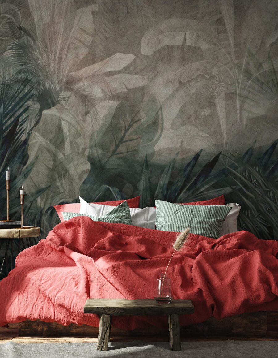Verander elke ruimte in een oase van rust met deze prachtige muurschildering van bladeren op een subtiele grijze achtergrond. Stel je voor dat je je kamer binnenstapt en begroet wordt door een weelderige jungle vibe – zonder de vervelende insecten natuurlijk! De zachte tinten brengen een kalmerende energie, perfect om tot rust te komen na een lange dag. Deze muurschildering is niet alleen decor; het is als een zacht gefluister van de natuur dat uitnodigt tot sereniteit in je huis. Vrienden zullen denken dat je naar de tropen bent ontsnapt. Perfect voor een knus hoekje of een levendige woonkamer, laat die tropische sfeer je muren een verhaal vertellen!