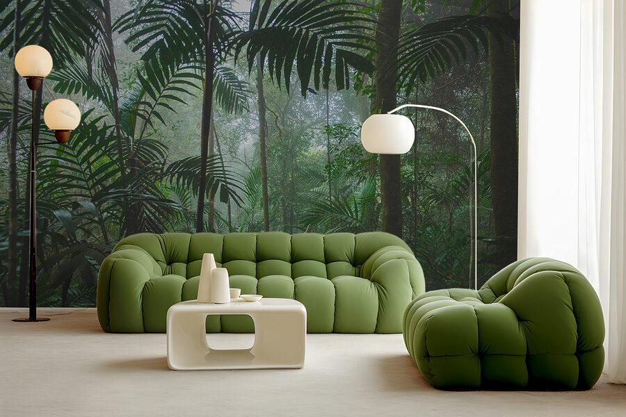 Stel je voor dat je een dichte, mistige jungle binnenstapt – gewoon in je eigen huis. Dat is wat deze “Dichte jungle met mistige sfeer” muurschildering in je interieur brengt. Het is alsof je de magie van een mistig bosmoment, bevroren in de tijd, op je muur hebt. Het diepe groen en de zachte, omhullende mist nodigen je uit om te ontspannen en misschien zelfs een beetje te dagdromen over avonturen in de natuur. Perfect voor elke kamer die een vleugje natuur of een rustgevende sfeer nodig heeft. Past prachtig bij houten meubels, vind je niet? Een kleine ontsnapping aan de alledaagse drukte zonder naar buiten te hoeven.