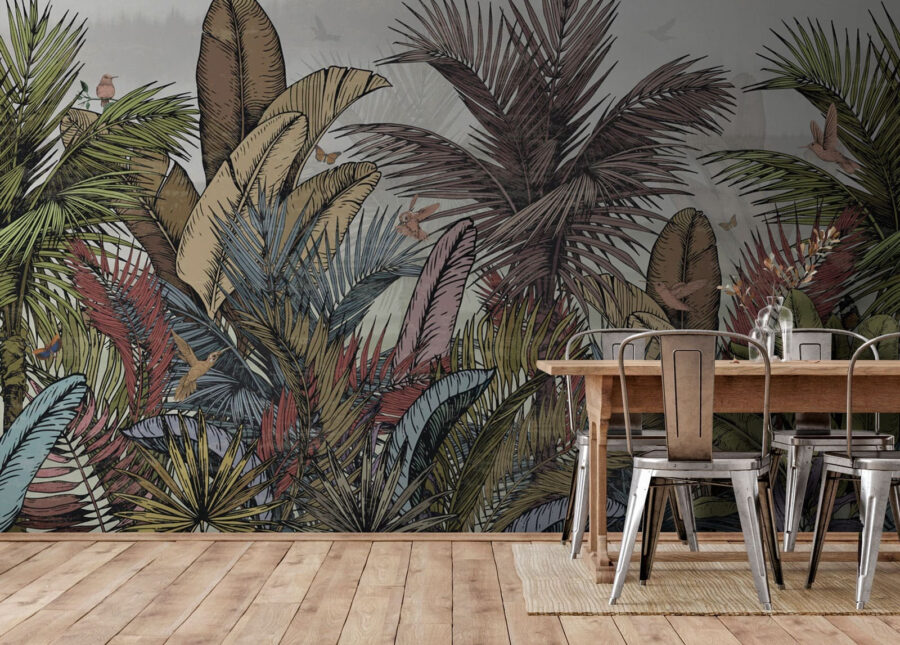 Stap je eigen jungle binnen met de muurschildering ‘Group of Tropical Plants’! Dit kleurrijke en levendige kunstwerk brengt de rustgevende sfeer van de natuur naar je muren. Stel je voor dat je wakker wordt en je in een weelderig paradijs waant, met rondfladderende vogels en zacht ritselende bladeren. Het straalt een ontspannen sfeer uit die zegt: ‘Hé, relax! Je bent nu op het eiland.’ Perfect voor een woonkamer, lounge of zelfs een gezellig leeshoekje. Vrienden zullen zich misschien afvragen of je in een botanische tuin bent gaan wonen! Combineer het met wat groen en je hebt een mini-oase die iedereen het gevoel geeft dat ze zijn ontsnapt naar een tropisch toevluchtsoord. Laat de goede tijden maar komen!