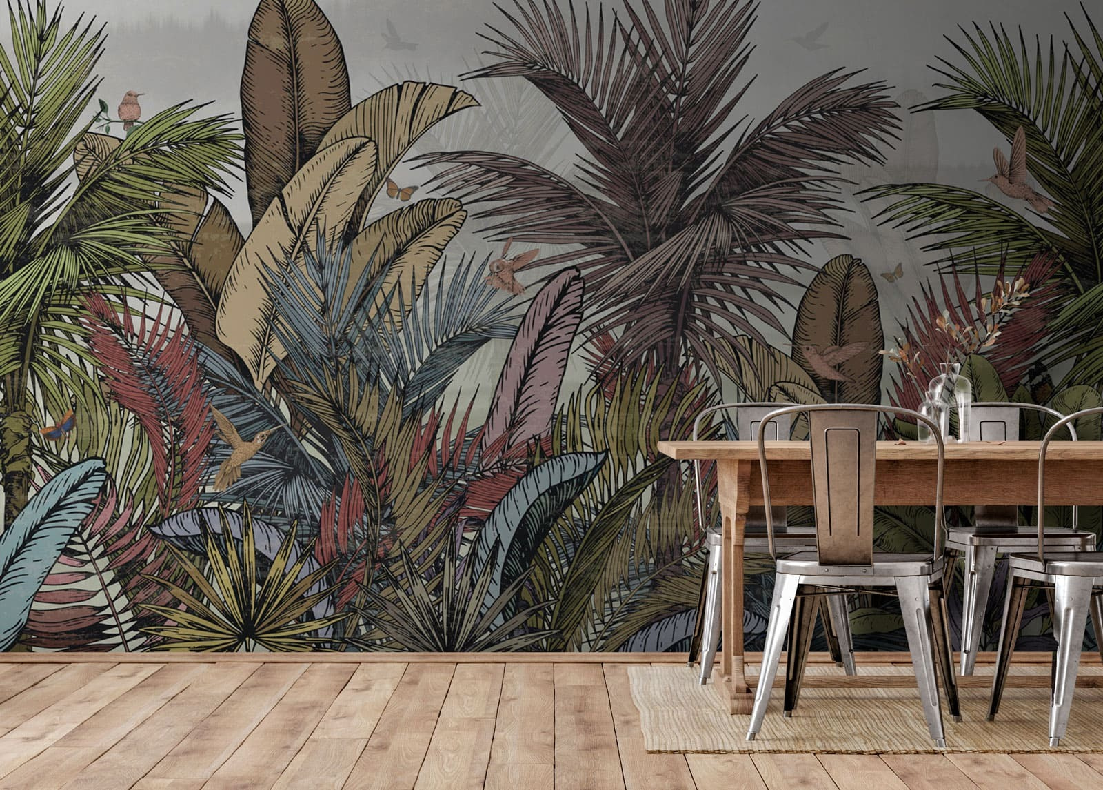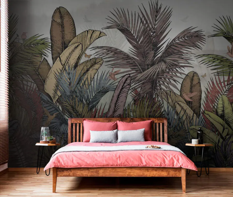 Stap je eigen jungle binnen met de muurschildering ‘Group of Tropical Plants’! Dit kleurrijke en levendige kunstwerk brengt de rustgevende sfeer van de natuur naar je muren. Stel je voor dat je wakker wordt en je in een weelderig paradijs waant, met rondfladderende vogels en zacht ritselende bladeren. Het straalt een ontspannen sfeer uit die zegt: ‘Hé, relax! Je bent nu op het eiland.’ Perfect voor een woonkamer, lounge of zelfs een gezellig leeshoekje. Vrienden zullen zich misschien afvragen of je in een botanische tuin bent gaan wonen! Combineer het met wat groen en je hebt een mini-oase die iedereen het gevoel geeft dat ze zijn ontsnapt naar een tropisch toevluchtsoord. Laat de goede tijden maar komen!