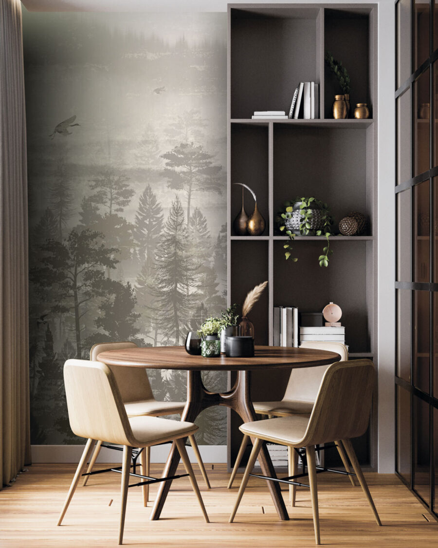 Transformeer je ruimte met deze prachtige muurschildering van vogels die over een rustig bos vliegen. Het is alsof je een stukje natuur in je woonkamer hebt, maar dan zonder de muggen natuurlijk. De zachte, gedempte kleuren roepen een rustgevende sfeer op, waardoor het de perfecte achtergrond is voor gezellige momenten, of je nu koffie drinkt of je verdiept in een goed boek. Stel je voor dat je wakker wordt met dit serene uitzicht, waarbij elke blik voelt als een mini-uitstapje naar het bos. Het is precies wat je nodig hebt als je houdt van een vleugje avontuur gecombineerd met een vleugje elegantie. Perfect voor elke natuurliefhebber of iedereen die zijn interieur naar een hoger niveau wil tillen!