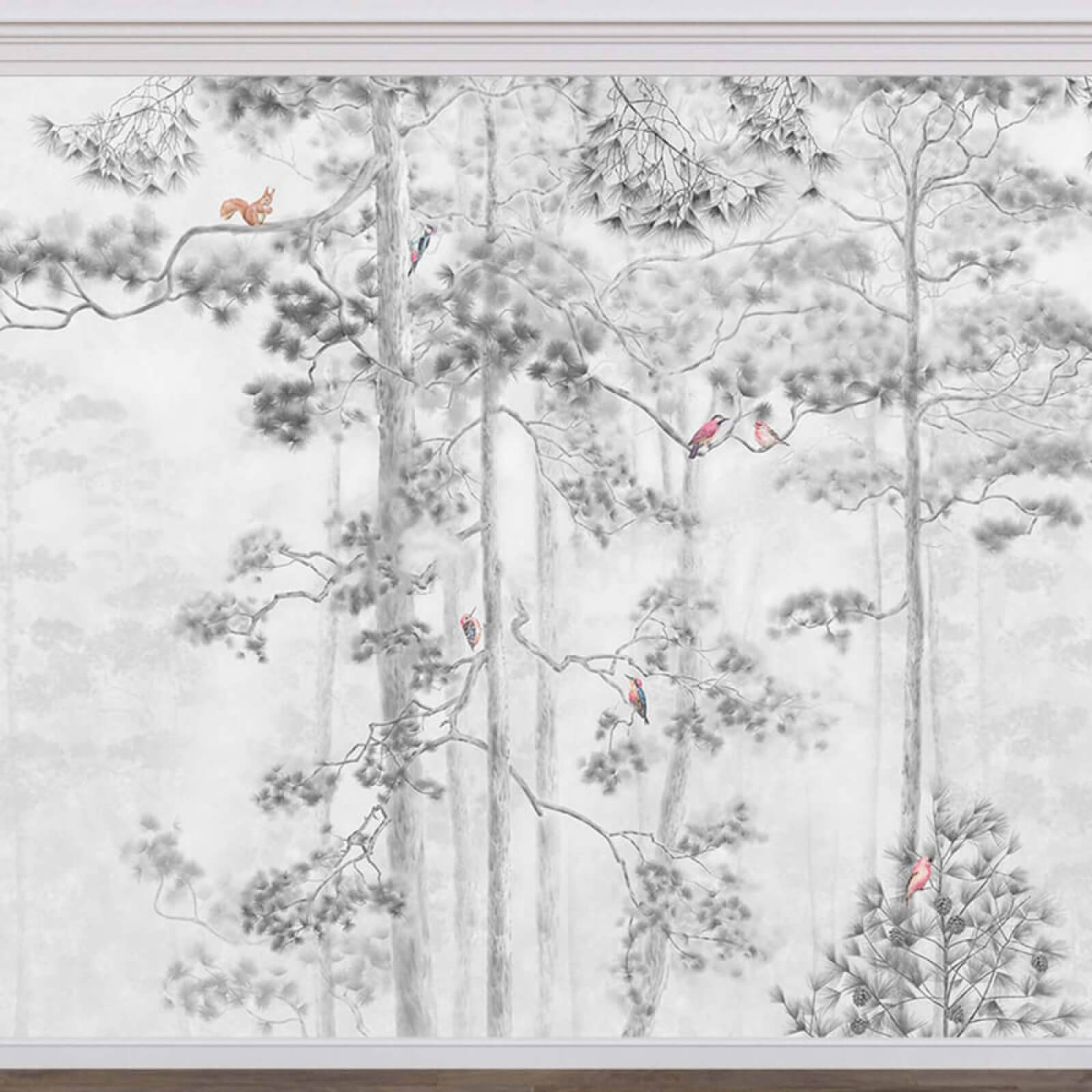 Dit is niet zomaar kunst aan de muur; het is een ontsnapping naar een oase in een mistig bos bij jou thuis. Is het niet verbazingwekkend hoe een beetje natuur je ruimte kan transformeren? Geef je muren een frisse wind met deze prachtige muurschildering. Misschien verdwaal je wel in de details – die kleine vogeltjes hebben een eigen persoonlijkheid!