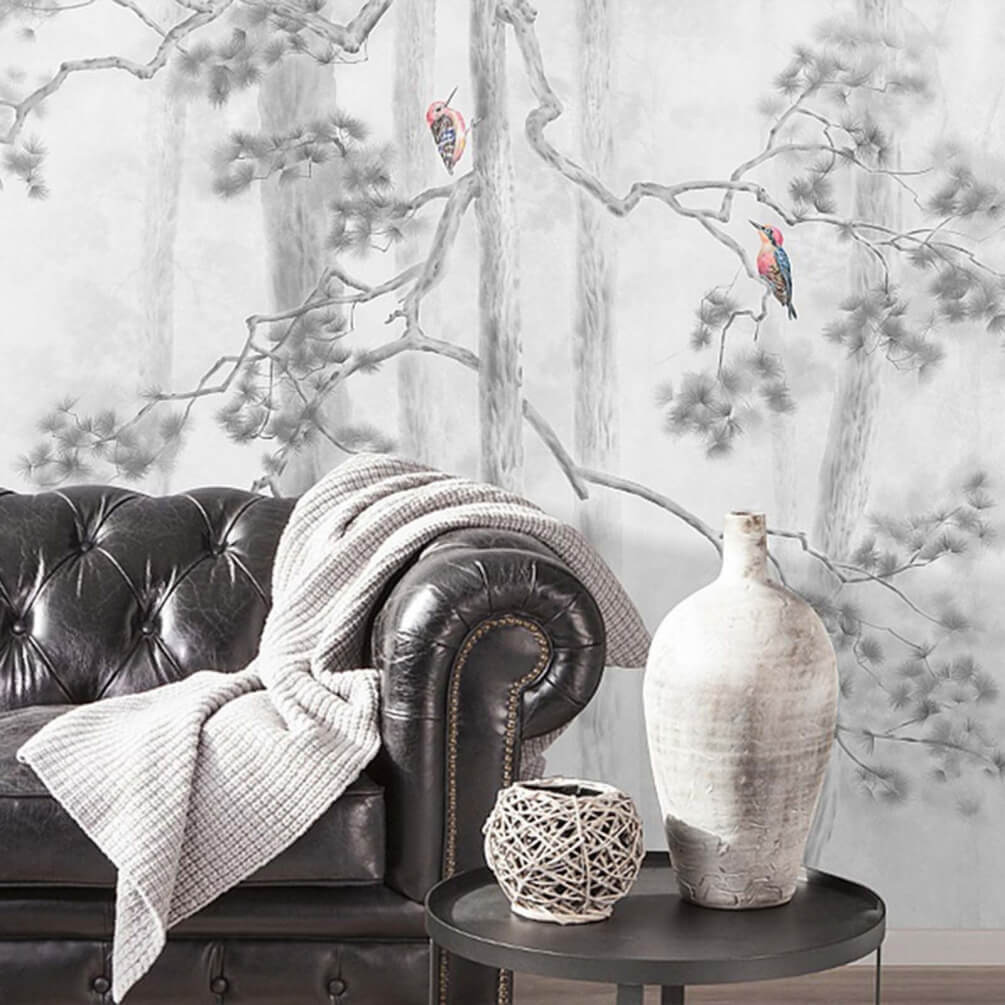 Stel je voor dat je een sereen bos binnenloopt telkens als je je woonkamer binnenstapt. Deze muurschildering met de toepasselijke naam “Groep vogels op bomen” uit de collectie “Foggy Forest Fotobehang” is de droom van een natuurliefhebber. Delicate vogels neergestreken op takken, te midden van een rustgevend, mistig boslandschap – het is als een zachte knipoog naar het wonder van het buitenleven.
