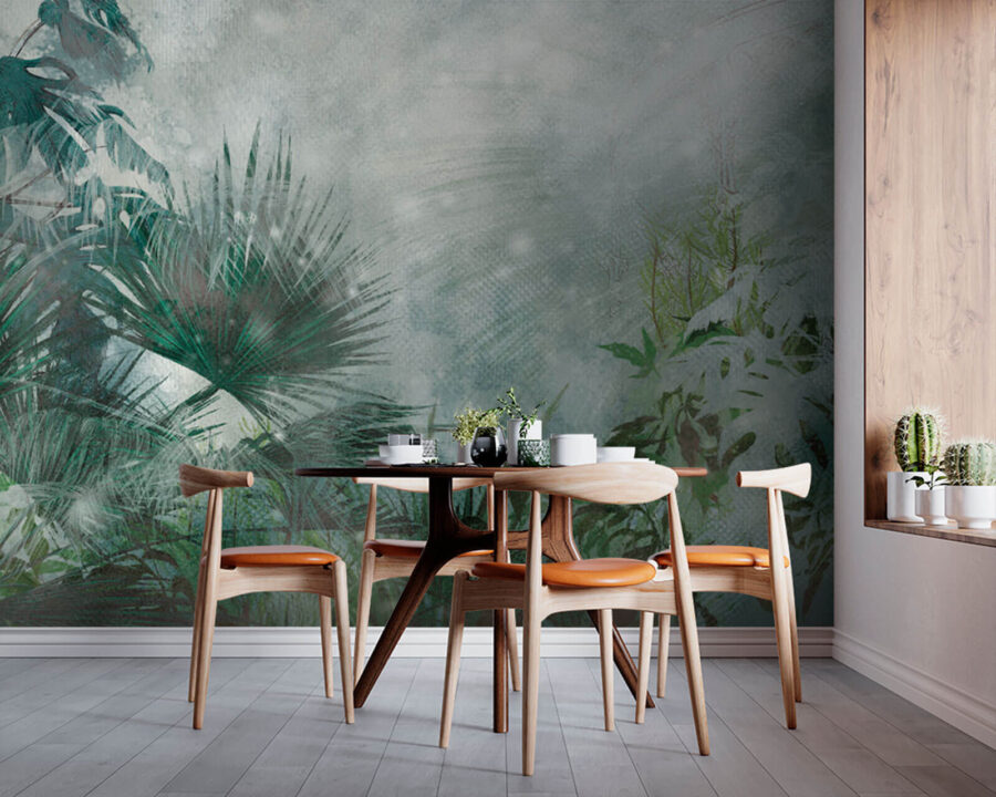 Tover elke ruimte om in een rustgevend toevluchtsoord met deze muurschildering geïnspireerd op het bos. Stel je voor dat je tussen hoge, bebladerde palmen staat die zachtjes wiegen in een zacht briesje – ah, de sereniteit! Dit stuk nodigt de natuur uit in je woonkamer en fleurt meteen elke hoek op met zijn weelderige groen en gedempte tinten. Het is alsof je thuis op minivakantie gaat, zonder het gedoe van het reizen. Of je nu aan je ochtendkoffie nipt of lekker wegkruipt met een boek, deze muurschildering zorgt voor een rustige sfeer. Misschien komen vrienden wel even langs om de vredige energie op te snuiven. Wie wist dat een beetje gebladerte zoveel vreugde kon brengen?