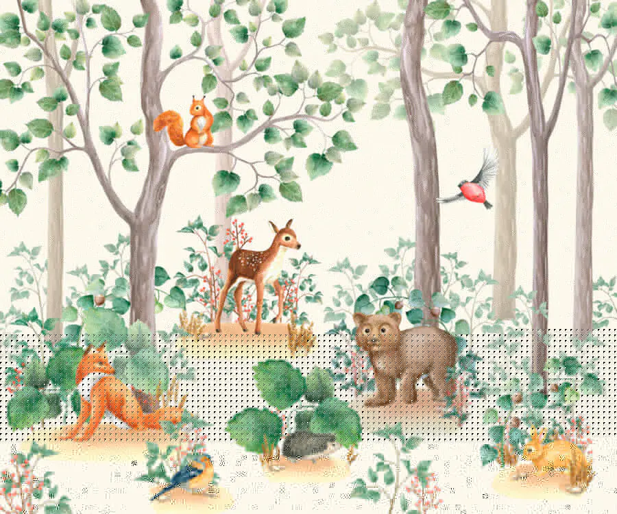 Step into a whimsical forest without ever leaving your home! This delightful wall mural, featuring charming animals like a playful squirrel and a curious deer, invites a slice of nature right into your space. Imagine sipping your morning coffee while watching a tiny fox peek out or getting lost in thoughts as a bear ambles by. It’s like having a wild tea party, but without the messy cleanup. The soft greens and earthy tones create a warm, inviting vibe—perfect for cozying up with a good book. Whether it’s a nursery or a living room, this mural sparks joy. It whispers tales of nature, calling you to unwind. Who wouldn’t want a little woodland magic in their life?