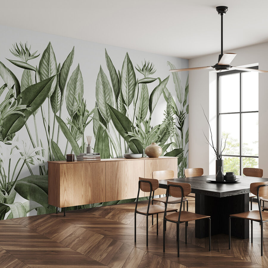 Heb je het gevoel dat je ruimte een frisse, tropische wind kan gebruiken? Kijk dan eens naar deze verbazingwekkende “Muurmuurschilderingen Weelderige tropische gebladerte-illustratie”. Het is een must voor elke jungle-liefhebbende ziel! Stel je voor dat je hier elke dag wakker van wordt, alsof je een regenwoud binnenstapt, gewoon in je woonkamer. Grote groene bladeren en gedetailleerde planten, perfect om een rustige, op de natuur geïnspireerde sfeer te creëren. Elke keer als je het ziet, waan je je op een weelderig eiland. Bovendien is het veelzijdig genoeg om bij veel stijlen te passen, of je nu van modern chic of boho houdt. Het is alsof je het buitenleven naar binnen haalt, maar dan zonder insecten!