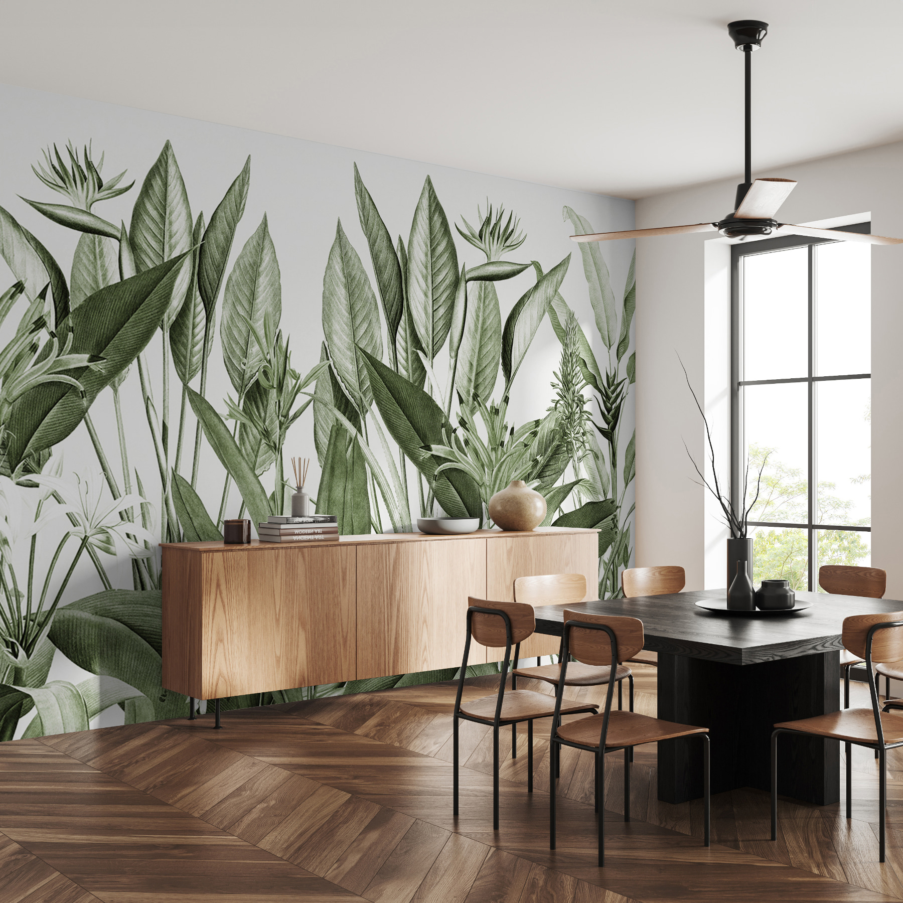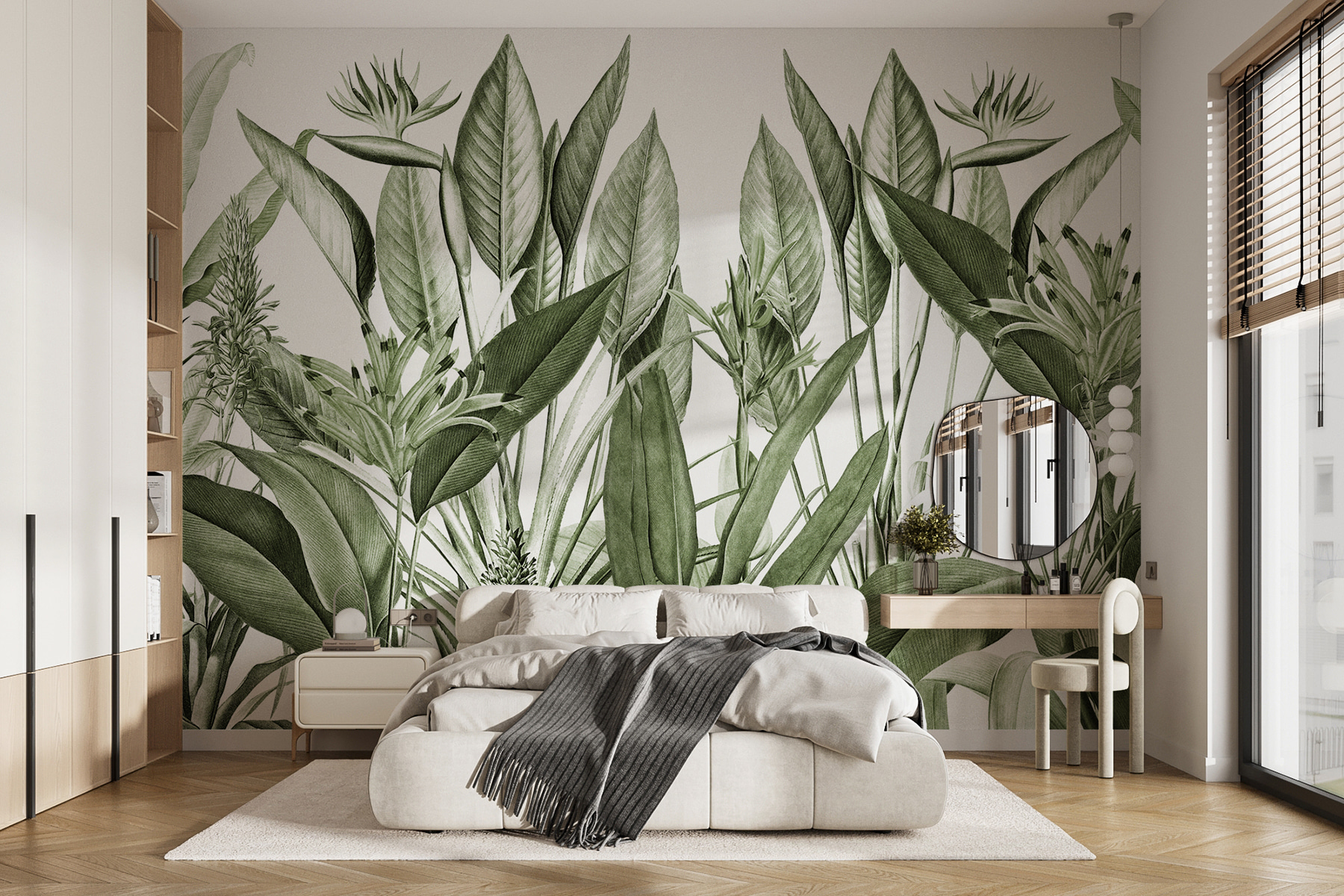 Heb je het gevoel dat je ruimte een frisse, tropische wind kan gebruiken? Kijk dan eens naar deze verbazingwekkende “Muurmuurschilderingen Weelderige tropische gebladerte-illustratie”. Het is een must voor elke jungle-liefhebbende ziel! Stel je voor dat je hier elke dag wakker van wordt, alsof je een regenwoud binnenstapt, gewoon in je woonkamer. Grote groene bladeren en gedetailleerde planten, perfect om een rustige, op de natuur geïnspireerde sfeer te creëren. Elke keer als je het ziet, waan je je op een weelderig eiland. Bovendien is het veelzijdig genoeg om bij veel stijlen te passen, of je nu van modern chic of boho houdt. Het is alsof je het buitenleven naar binnen haalt, maar dan zonder insecten!