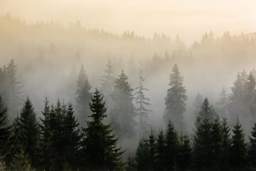 1 beoordeling voor Fotobehang Groep bomen in de mist