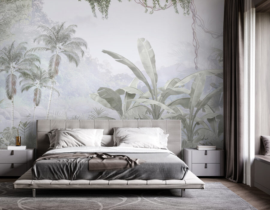Verander elke ruimte in een luchtige ontsnapping met deze muurschildering met een weelderige groep palmbomen. Het is alsof je een stukje paradijs in je woonkamer hebt – stel je voor dat je koffie drinkt terwijl je naar die wuivende palmen staart. De zachte kleuren voegen een rustgevende sfeer toe, perfect voor een vredig toevluchtsoord. Misschien is het de achtergrond voor gezellige filmavonden of een perfecte plek voor die eindeloze zoomgesprekken – wie wil er nu geen tropisch paradijs achter zich? Deze muurschildering is eigenlijk een vakantie waarvoor je niets hoeft in te pakken. Je muren verdienen een beetje plezier, toch?