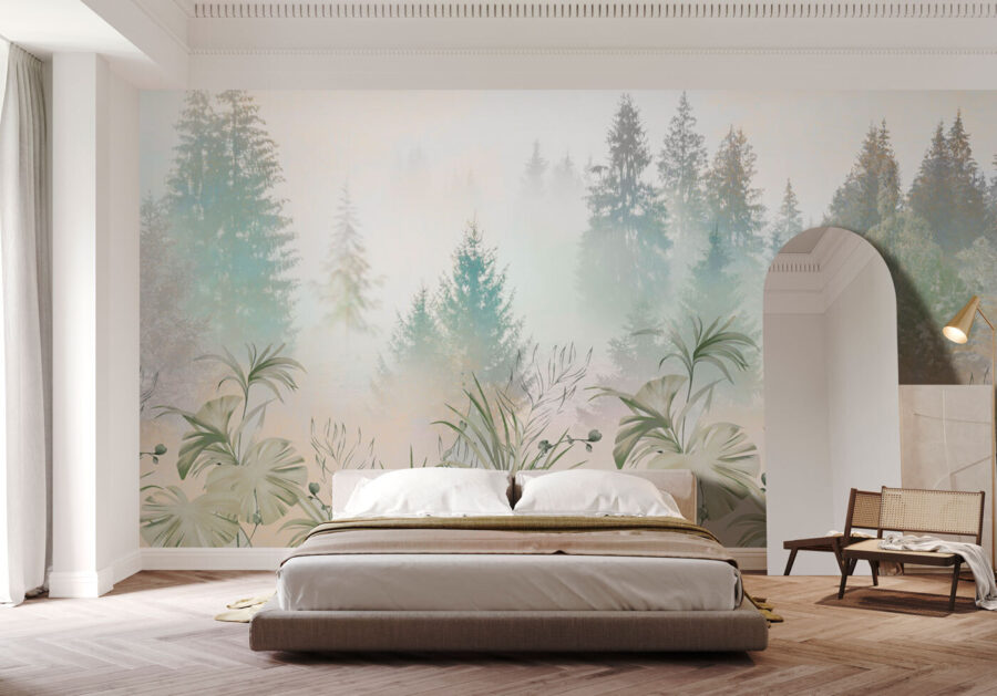 Stel je voor dat je elke dag wakker wordt met de serene sfeer van een mistig bos, gewoon in je woonkamer. Dat is wat deze “Misty Forest with Lush Greenery” muurschildering je brengt. Het is alsof je een stukje rust en natuur aan je muur hebt hangen zonder dat je het comfort van je huis hoeft te verlaten. Het zachte groen en de zachte mist creëren een kalmerend effect dat perfect is voor elke ruimte die op zoek is naar een vleugje natuur.