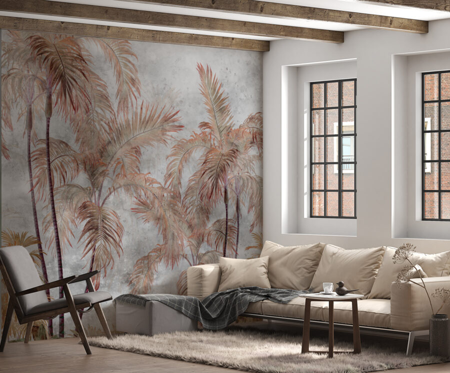 Tover elke kamer om in een tropisch paradijs met deze muurschildering met een prachtige groep palmbomen. Stel je voor dat je je kamer binnenloopt en meteen die warme bries voelt, ook al is het maar een frisse middag. De palmbladeren fluisteren van zonovergoten vakanties en luie stranddagen. Deze muurschildering is perfect om een gezellige leeshoek of een levendige eethoek te creëren en brengt een vleugje natuur binnenshuis. Het is alsof je een minivakantie op je muur hebt – wie wil dat nou niet? Breng die eilandvibes naar huis en zie hoe je ruimte tot leven komt!