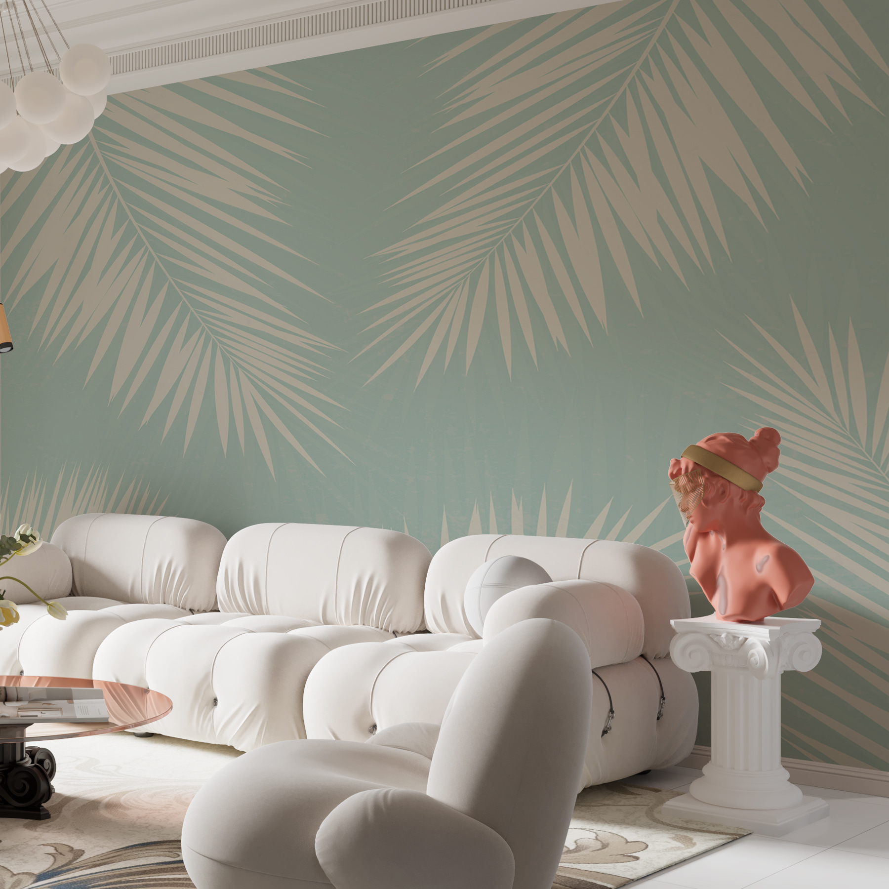 Stel je voor dat je de rustige sfeer van een tropische vakantie in je woonkamer kunt brengen – dat is precies wat je krijgt met deze Tropical Palm Leaves muurschildering. Perfect voor iedereen die hunkert naar dat weelderige groen en relaxte gevoel, maar dan zonder de echte vochtigheid. Het zachte groen en de gedetailleerde bladeren geven het gevoel alsof de jungle binnen is, zonder de muggen.