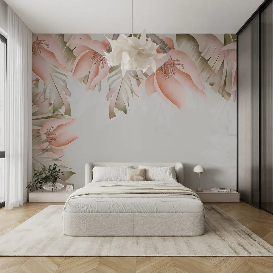 Maak van elke kamer een gezellige plek met deze prachtige bloemenmuurschildering. Stel je roze bloemblaadjes voor die op de muren dansen en een frisse sfeer geven alsof je een serene tuin binnenstapt. Het zachte groen en de zachte tinten creëren een rustgevende sfeer, perfect om tot rust te komen na een lange dag of om vrienden te ontvangen voor een kopje koffie. Het is alsof je je eigen stukje natuur binnenshuis hebt. Bovendien is het een moeiteloze manier om je ruimte te verfraaien zonder het gedoe van traditionele decoratie. Stel je eens voor hoe het is om te ontspannen onder deze bloemen – over een sfeerbooster gesproken!