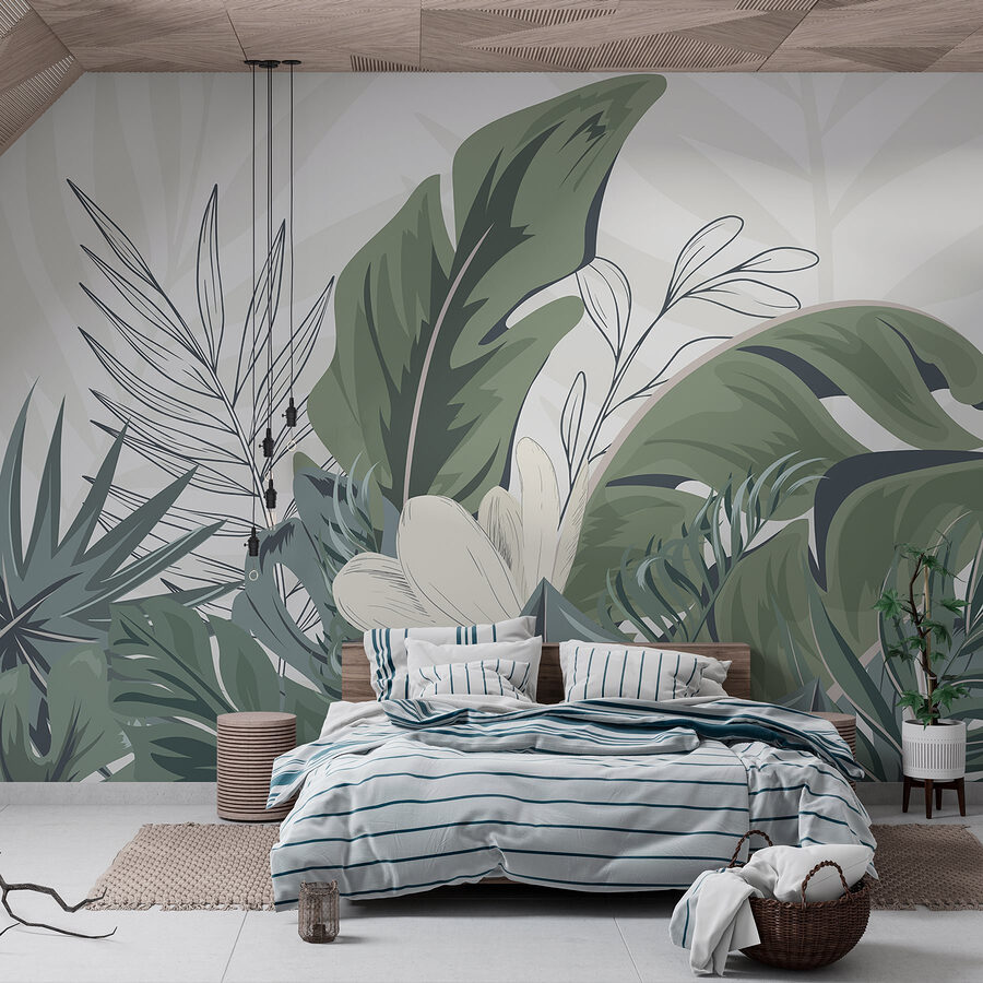 Tover elke ruimte om in een sereen toevluchtsoord met deze prachtige muurschildering, “Natuurlijk gebladerte in harmonie en balans”. Stel je voor dat je elke ochtend een weelderig paradijs binnenstapt, waar levendig groen en zachte texturen je uitnodigen om te ontspannen. Deze muurschildering combineert perfect tropische sferen met een rustgevende esthetiek, waardoor het een fantastische achtergrond is voor rustige avonden of levendige bijeenkomsten. Stel je voor dat je koffie drinkt omringd door de schoonheid van de natuur of dat je vrienden ontvangt in een oase-achtige omgeving. Het is alsof je een stukje van het buitenleven in huis haalt, zonder de insecten! Ideaal voor woonkamers, slaapkamers of zelfs creatieve ruimtes, het zal zeker vreugde en een beetje afgunst opwekken bij gasten. Evenwicht, harmonie en een vleugje natuur – wat wil een mens nog meer?