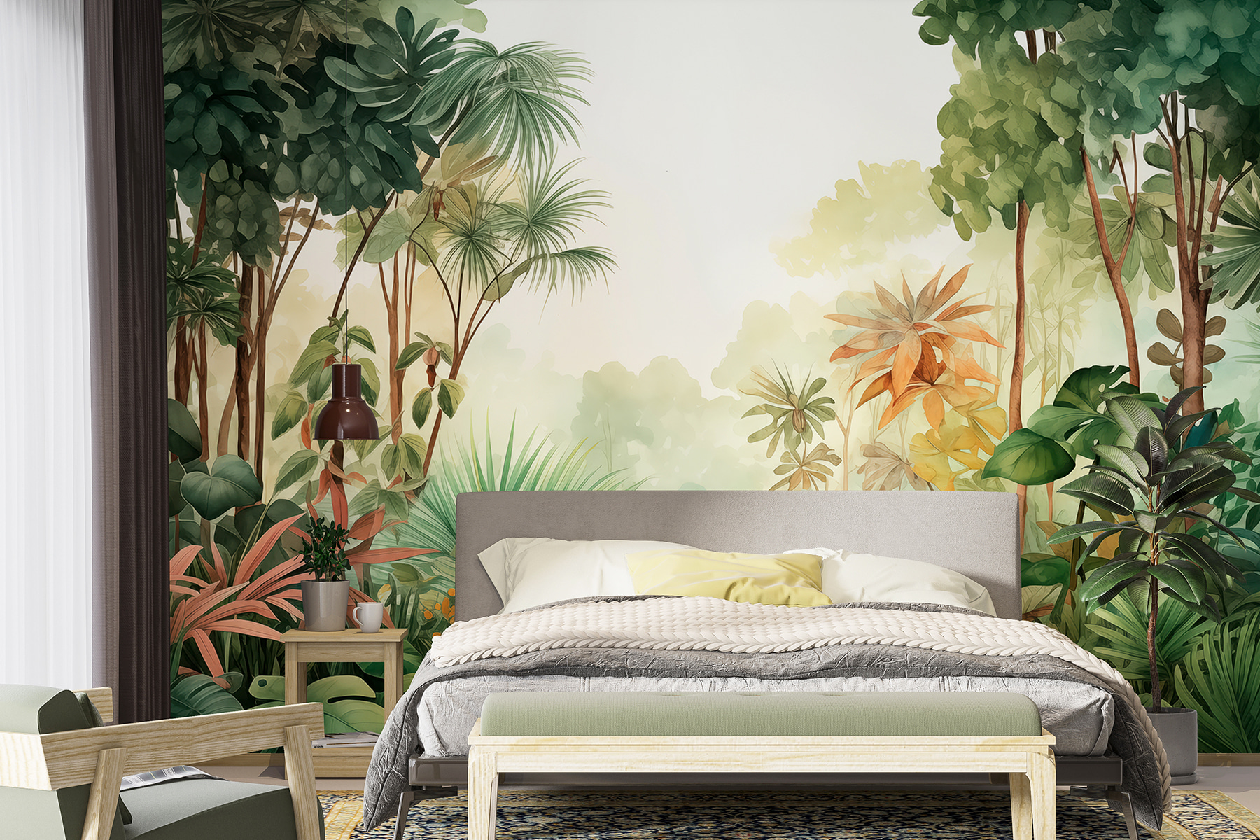 Stel je voor dat je een kamer binnenstapt en meteen wordt meegevoerd naar een sereen aquarelbos. Deze muurschildering, mensen, brengt die weelderige jungle vibe rechtstreeks naar je muren! Het is niet zomaar een afbeelding, het is een ontsnapping. De groene tinten fluisteren kalmte – perfect om tot rust te komen na een hectische dag. Stel je een regenachtige dag voor, opgekruld met je favoriete boek, of zelfs een bijeenkomst met vrienden die niet kunnen stoppen met het bewonderen van je bosoase. Het voelt een beetje alsof de muren je een zachte, bladerige knuffel geven.