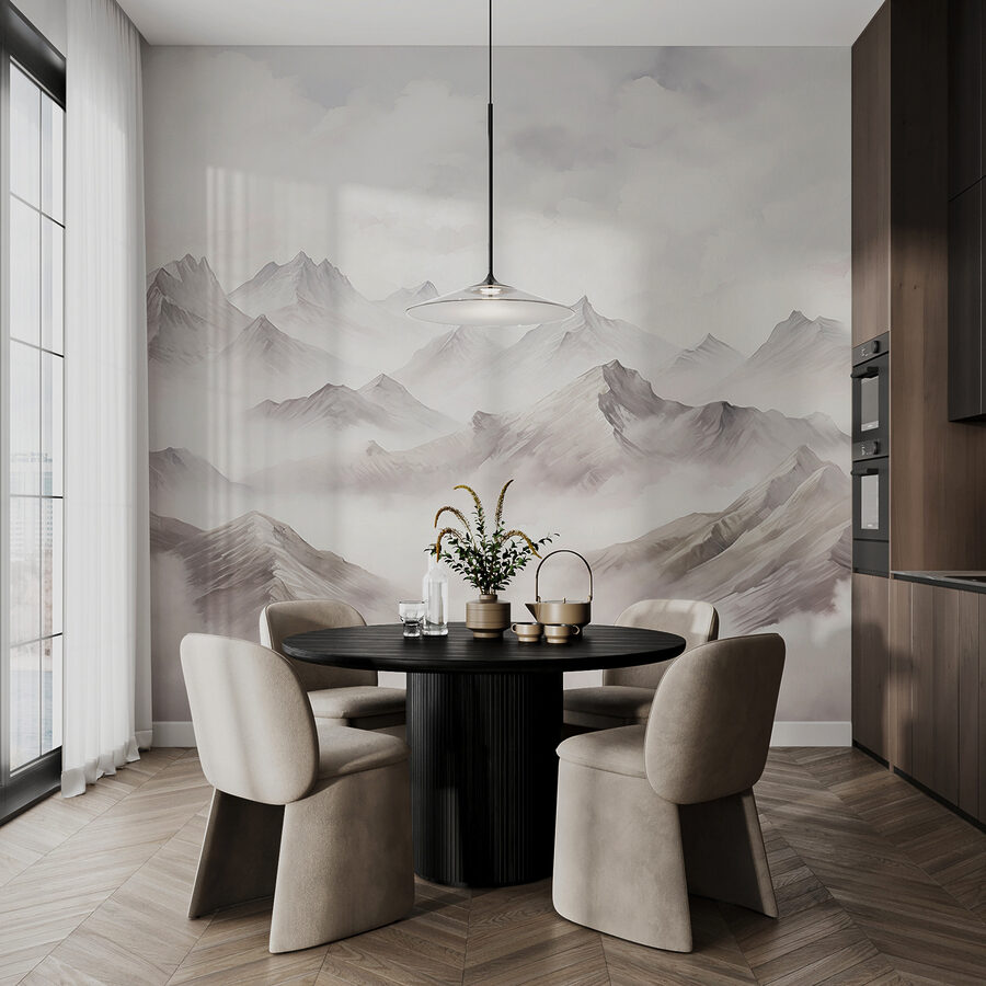 Stel je eens voor dat je een kamer binnenloopt en het gevoel hebt dat je regelrecht een dromerige ontsnapping uit de bergen binnenstapt. Dat is wat deze muurschildering “Bergketen met wolken” doet met elke ruimte. Het lijkt wel het meesterwerk van Moeder Natuur zelf: verfijnde wolken die ruige bergtoppen kussen, badend in het zachte daglicht. Perfect voor iedereen die verlangt naar een vleugje wildernis, zonder de wandelschoenen. Geeft je kamer een ruimtelijk, rustig en een beetje mysterieus gevoel. Verwacht bijna een zacht briesje en vogelgezang! Het is kunst voor de muur en voor de ziel.