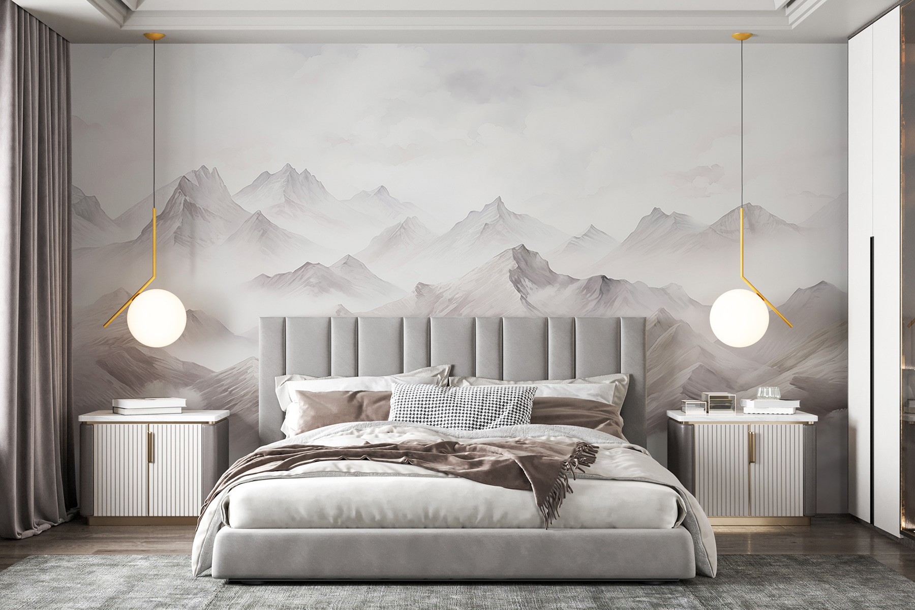 Stel je eens voor dat je een kamer binnenloopt en het gevoel hebt dat je regelrecht een dromerige ontsnapping uit de bergen binnenstapt. Dat is wat deze muurschildering “Bergketen met wolken” doet met elke ruimte. Het lijkt wel het meesterwerk van Moeder Natuur zelf: verfijnde wolken die ruige bergtoppen kussen, badend in het zachte daglicht. Perfect voor iedereen die verlangt naar een vleugje wildernis, zonder de wandelschoenen. Geeft je kamer een ruimtelijk, rustig en een beetje mysterieus gevoel. Verwacht bijna een zacht briesje en vogelgezang! Het is kunst voor de muur en voor de ziel.