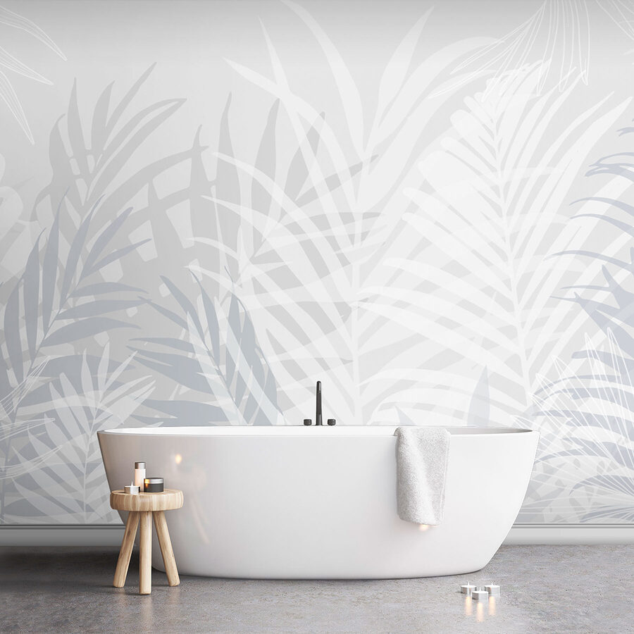 Transformeer je ruimte met deze prachtige muurschildering met een serene grijze en witte achtergrond, speels versierd met tere blaadjes. Het is alsof je de rust van een bos naar je woonkamer brengt. Stel je voor dat je wakker wordt en het gevoel hebt dat je omringd bent door de natuur – zonder de vogelconcerten in de vroege ochtend. Deze muurschildering is ideaal voor wie houdt van een minimalistische sfeer maar toch een vleugje tropische sfeer wil, en past moeiteloos in elk interieur. Perfect voor het creëren van een gezellige leeshoek of een chique eethoek. Wie wist dat planten zo relaxed konden zijn? Absoluut betoverend!