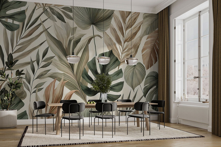 Tover elke kamer om in een tropische oase met deze prachtige muurschildering met weelderige bladeren en aardetinten. Stel je voor dat je wakker wordt en het gevoel hebt dat je in een sereen regenwoud bent – klinkt dromerig, toch? Of het nu de woonkamer is of een gezellig leeshoekje, de mix van groen en zacht bruin creëert een rustgevende sfeer, perfect voor die momenten waarop volwassen worden een beetje te veel wordt. Bovendien is het net alsof je thuis op minivakantie bent. Wees alleen niet verbaasd als vrienden je gaan vragen wanneer je een strandfeest geeft! Deze muurschildering is gemakkelijk aan te brengen en zal zeker een aantal op de natuur geïnspireerde gesprekken op gang brengen.