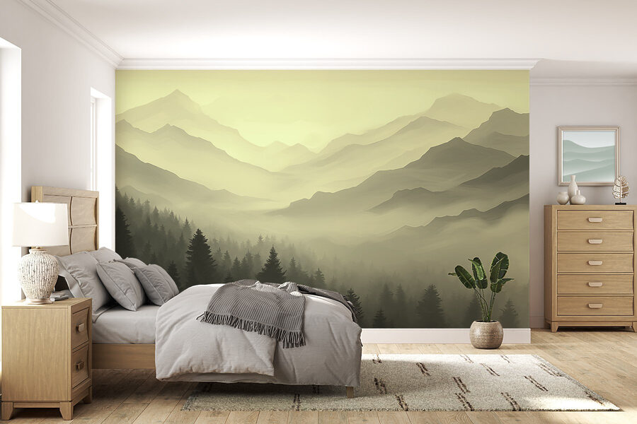 Verander elke muur in een serene ontsnapping met deze prachtige mistige muurschildering van een berglandschap. Stel je voor dat je aan je koffie nipt terwijl je omringd wordt door torenhoge dennenbomen en zachte bergruggen, terwijl een kalmerende mist je omhult – klinkt heerlijk, toch? Deze muurschildering is perfect om een gezellig hoekje te creëren of een dromerige achtergrond in een slaapkamer. Of je nu van de bergen houdt of gewoon een beetje natuur in je leven nodig hebt, het is een dagelijkse herinnering aan het buitenleven – zonder de wandelschoenen! En wie wil er nu niet het gevoel hebben dat hij in een ansichtkaart woont?