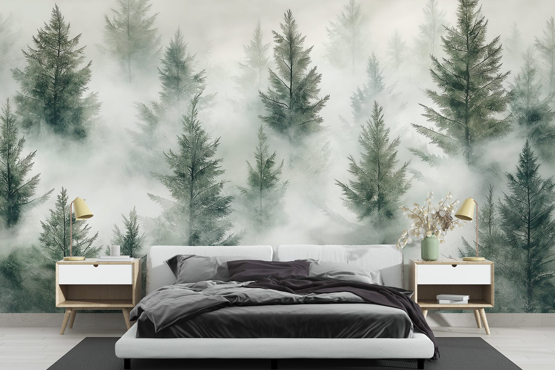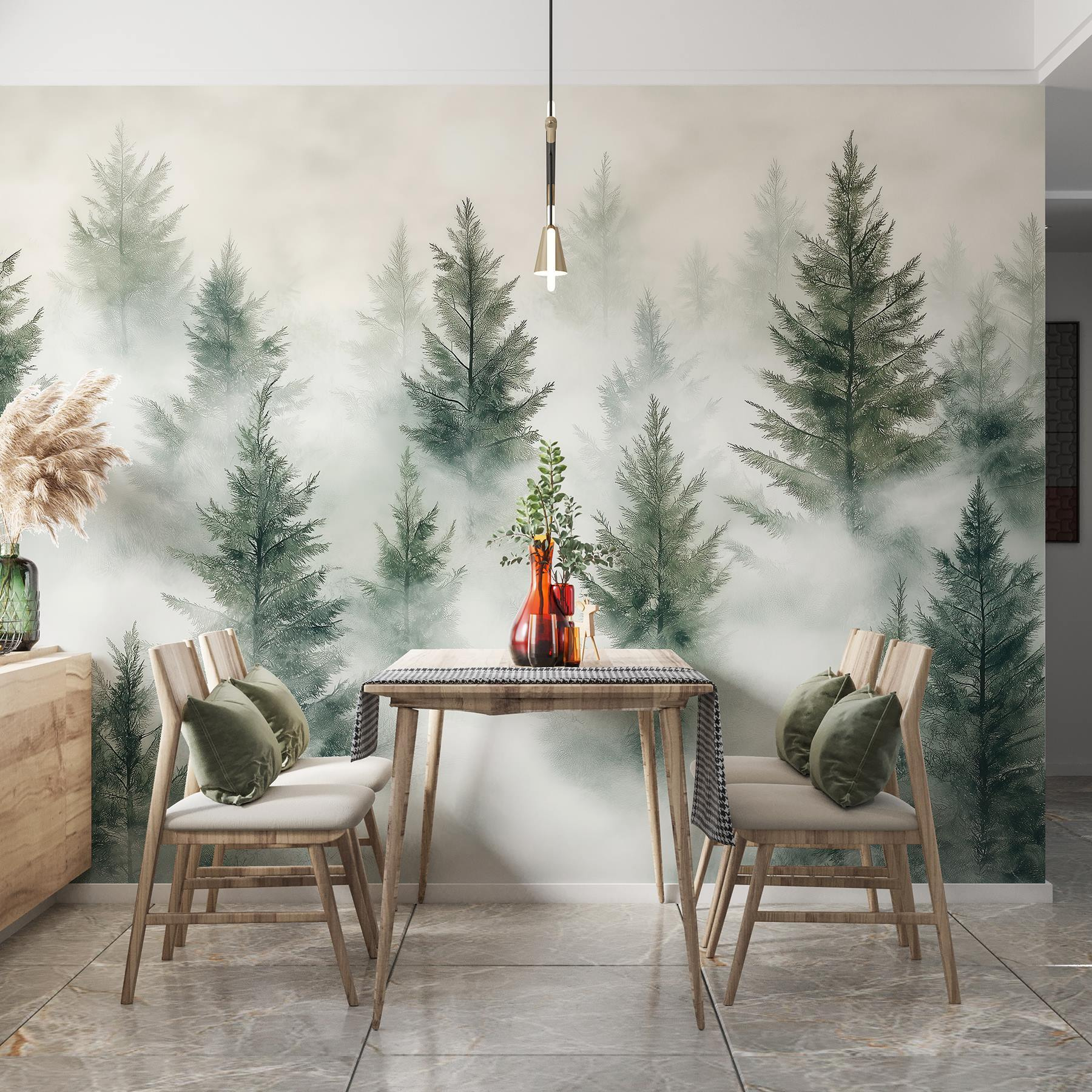 Tover elke kamer om in een sereen oerwoud met deze prachtige muurschildering van een weelderige groep bomen gehuld in zachte mist. Stel je voor dat je ‘s ochtends aan je koffie nipt terwijl je een blik werpt op deze fluisterende reuzen, hun mistige omhelzing die een gevoel van kalmte oproept dat zich om je heen wikkelt als een knusse deken. Het is alsof je een stukje natuur in huis haalt, zonder de insecten en het vuil! Deze muurschildering is perfect voor woon- of slaapkamers en voegt diepte en een dromerige sfeer toe. Het is echt een kunstwerk uit de natuur – je hebt geen wandelschoenen nodig!