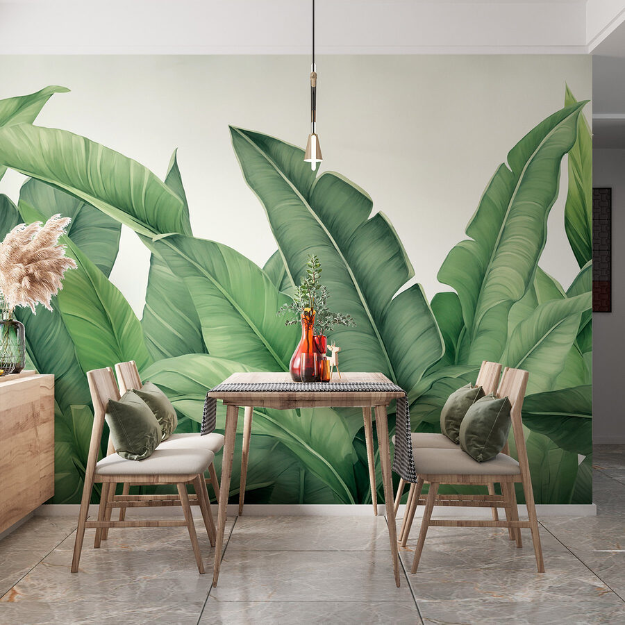 Verander je ruimte in een groene oase met deze prachtige muurschildering van weelderige bladeren. Stel je voor dat je een kamer binnenloopt die aanvoelt als een tropische vakantie. Het is alsof je het buitenleven naar binnen haalt zonder de vervelende insecten. Het levendige groen en de natuurlijke vormen creëren een verfrissende sfeer, perfect voor elk hoekje dat leven nodig heeft. Stelt u zich eens voor: lekker wegkruipen met een goed boek of een gezellig samenzijn, omringd door de vrolijkheid van de natuur. Het is niet zomaar een decor; het is een sfeer! Eén blik is al genoeg om vrolijk van te worden. En wie wil niet het gevoel hebben dat hij permanent op vakantie is?