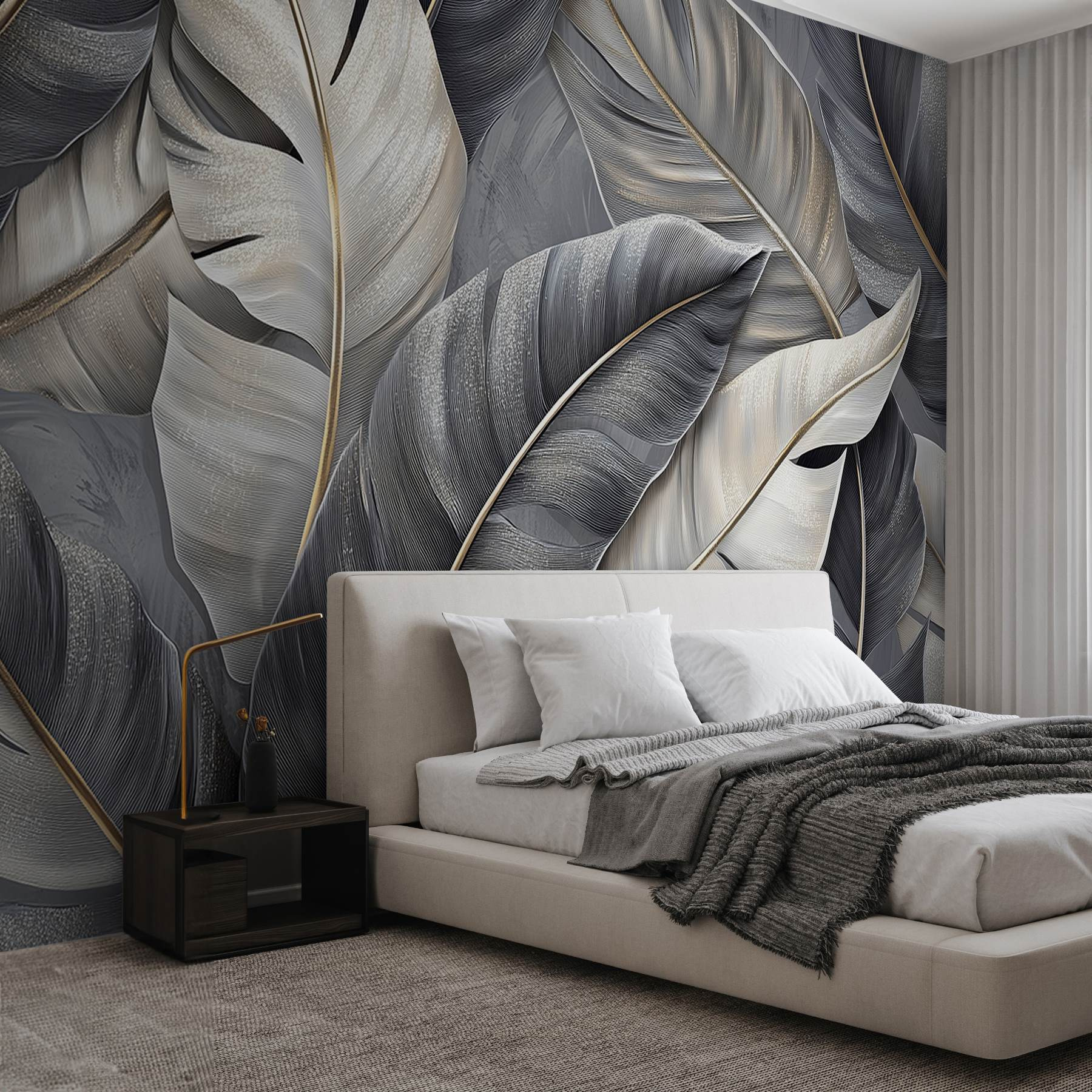 Transformeer elke kamer met deze prachtige muurschildering met een prachtige groep veren op een zacht grijs oppervlak. Het is alsof je de rust van de natuur in huis haalt, zonder de insecten! Stel je voor dat je wakker wordt en begroet wordt door dit chique ontwerp – elegant en toch ontspannen, het voegt moeiteloos dat vleugje verfijnde charme toe. Perfect voor een gezellige leeshoek of een minimalistische ruimte die wat persoonlijkheid wil. Bovendien passen deze tinten bij vrijwel elk kleurenschema dat je maar kunt bedenken, waardoor het veelzijdig genoeg is om bij je eigen unieke sfeer te passen. Het is echt een gespreksstarter, waardoor vrienden vragen “Waar heb je dat vandaan?”. Zorg dat je klaar bent om het geheim te delen!