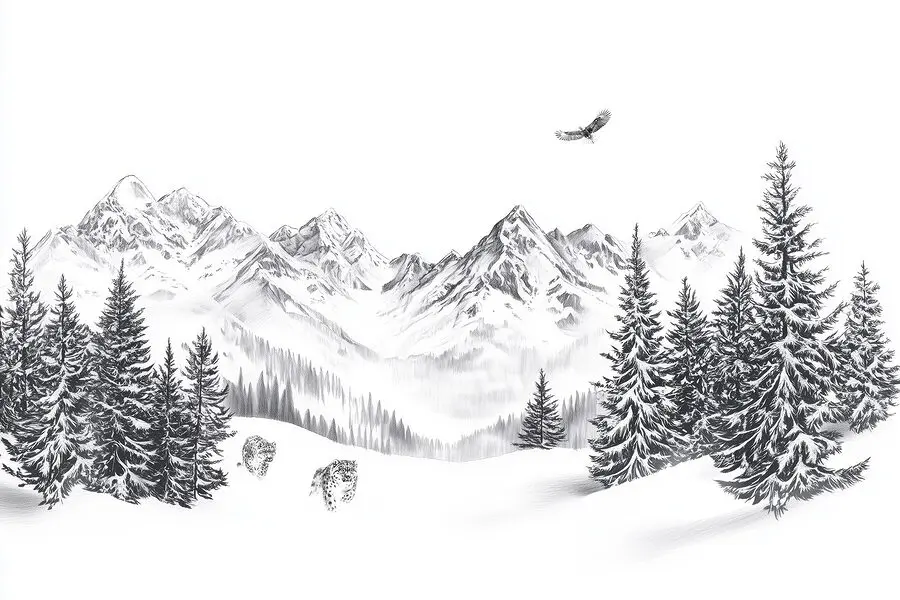 Tover elke muur om in een sereen toevluchtsoord met deze prachtige muurschildering van besneeuwd berglandschap. Stel je de zachte stilte voor van vallende sneeuw terwijl majestueuze bergen oprijzen in de wolken terwijl een eenzame vogel overvliegt. Het is alsof je een vredig stukje natuur in huis haalt. Stel je voor dat je ‘s ochtends aan je koffie nipt, naar deze schoonheid staart en een golf van kalmte over je heen voelt komen. Deze muurschildering is perfect voor gezellige hoekjes of opvallende muren en geeft niet alleen karakter, maar nodigt ook uit tot dagdromen over besneeuwde wandelingen en frisse berglucht. Bovendien, wie wil er nu niet een paar brutale luipaarden in de buurt? Het is een gespreksstarter en een ontsnapping, alles in één!