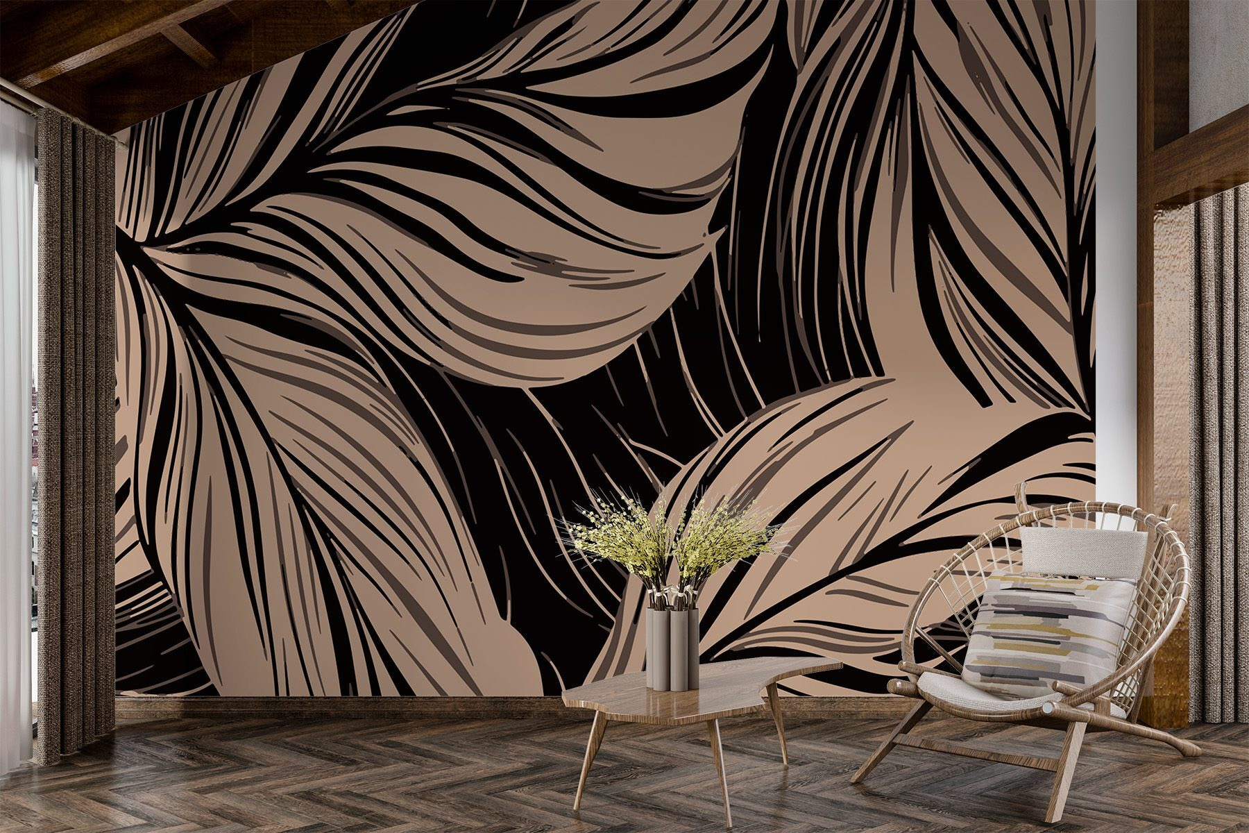 Verander een saaie muur in een serene oase met de betoverende muurschildering “Flowing Lines of Elegant Foliage”. Deze schoonheid vangt de essentie van de natuur en brengt zacht, elegant gebladerte naar je woonruimte. Stel je voor dat je in een tropisch paradijs stapt telkens als je langsloopt – de zachte rondingen en vloeiende lijnen zijn als een warme knuffel voor je huis. Perfect voor die gezellige leeshoek of om een saaie hal op te fleuren. Bovendien zullen bezoekers zeker willen weten waar je zo’n unieke toets hebt gevonden. Stel je voor dat de gesprekken beginnen-“Oh, dit oude ding? Gewoon mijn stukje natuur!” Voeg een vleugje stijl en een vleugje eigenzinnigheid toe. Het is meer dan alleen een muurschildering; het is een sfeer.