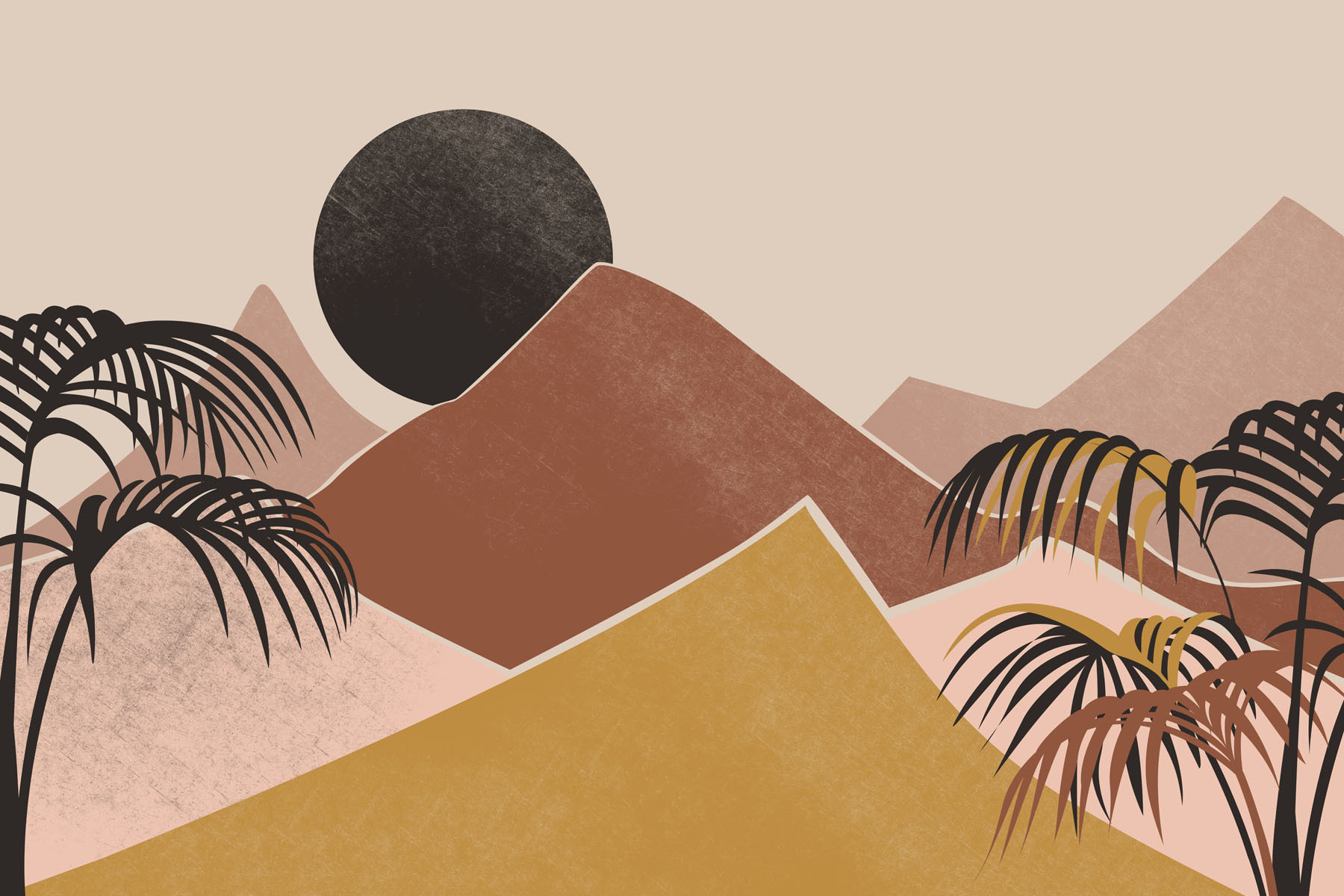 Transformeer elke kamer met deze prachtige muurschildering, “Landschap met palmbomen en bergen”. Stel je voor dat je een gezellige ontsnapping binnenstapt telkens als je er een blik op werpt. De warme, aardse tinten in combinatie met de silhouetten van wuivende palmbomen maken het een perfecte achtergrond voor dagdromen over verre oorden. Deze muurschildering straalt “vakantiegevoel” uit en doet wonderen in een woonkamer, slaapkamer of zelfs een creatief hoekje. Het voelt als een zachte knuffel van de natuur, thuis. Bovendien beloven die bergen avonturen zonder ooit de bank te verlaten – wie kan dat weerstaan?
