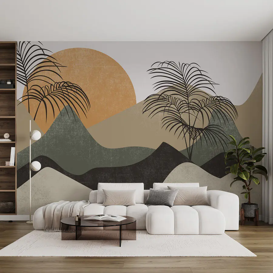 Tover elke muur om in een dromerige ontsnapping met de “Fotobehang Palm Trees and Mountains” print. Stel je voor: het is een luie namiddag en je luiert in je favoriete stoel, met het gevoel dat je zo die rustige bergen in zou kunnen glijden. De zachte kleuren hullen de kamer in een warme omhelzing, terwijl de palmbomen wiegen alsof ze je uitnodigen om te chillen en te nippen van een kokosnootdrankje. Deze perfecte mix van natuur vibes en modern design blaast leven in elke ruimte. Of het nu een gezellige woonkamer is of een chille slaapkamer, het is net een minivakantie zonder de vlucht. Wie zou dat niet willen? Stel je de gesprekken eens voor – iedereen zal willen praten over hoe weelderig en uitnodigend je huis aanvoelt!