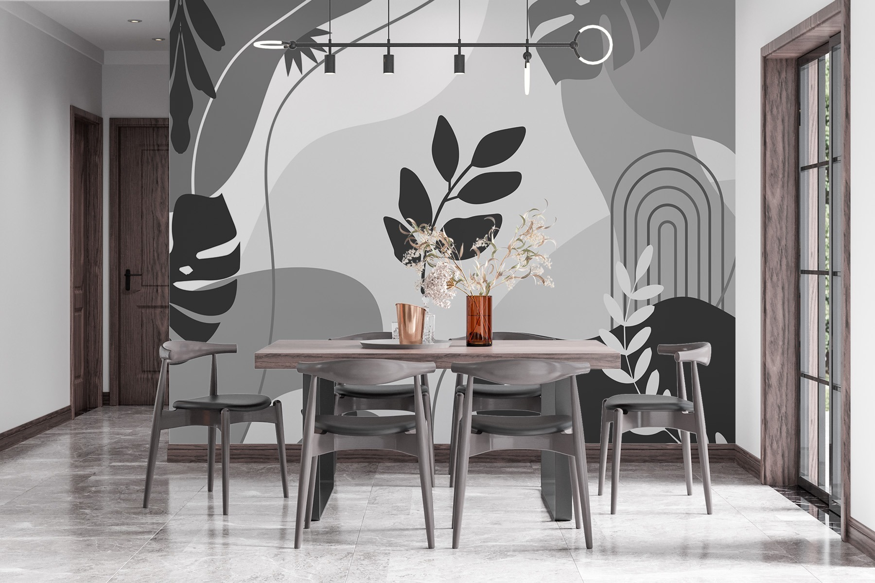 Transformeer je ruimte met deze prachtige zwart-witte muurschildering met een speelse dans van bladeren en planten. Het is alsof je de buitenlucht binnenhaalt, zonder de vervelende insecten, toch? Stel je voor dat je ‘s ochtends aan je koffie nipt omringd door dit chique gebladerte en je geïnspireerd en een beetje avontuurlijk voelt. De vloeiende vormen creëren een rustgevende sfeer, perfect voor een gezellige kamer of een licht kantoor. Het is ook een geweldige gespreksstarter – geloof ons, vrienden zullen niet zomaar een blik werpen; ze zullen willen weten waar deze schoonheid vandaan komt. Stijl ontmoet natuur op een heerlijke manier!