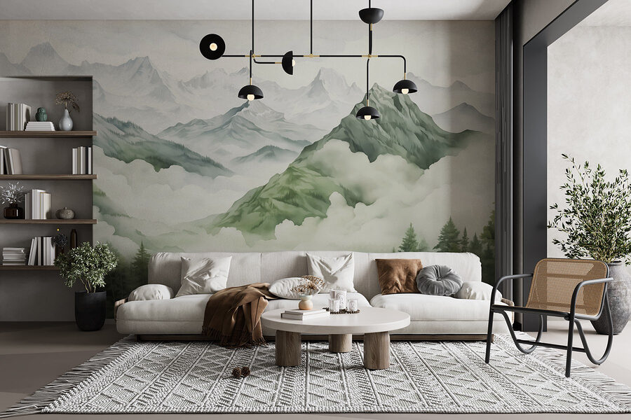 Verander je ruimte in een serene ontsnapping uit de bergen met deze betoverende muurschildering. Stel je voor dat je wakker wordt met majestueuze bergtoppen die door zachte wolken gluren en weelderige bomen die wiegen in een zacht briesje. Het is alsof je een stukje van het buitenleven naar je woonkamer brengt – perfect voor die dagen dat een wandeling er gewoon niet in zit. Vrienden kunnen langskomen en zich meteen ontspannen voelen, alsof ze een vredig toevluchtsoord zijn binnengestapt. Bovendien lokt het gesprekken uit over avonturen, de natuur en misschien zelfs die keer dat je verdwaald was op een pad (dat hebben we allemaal wel eens meegemaakt, toch?). Echt, deze muurschildering fleurt niet alleen muren op, maar maakt ze ook vrolijker.
